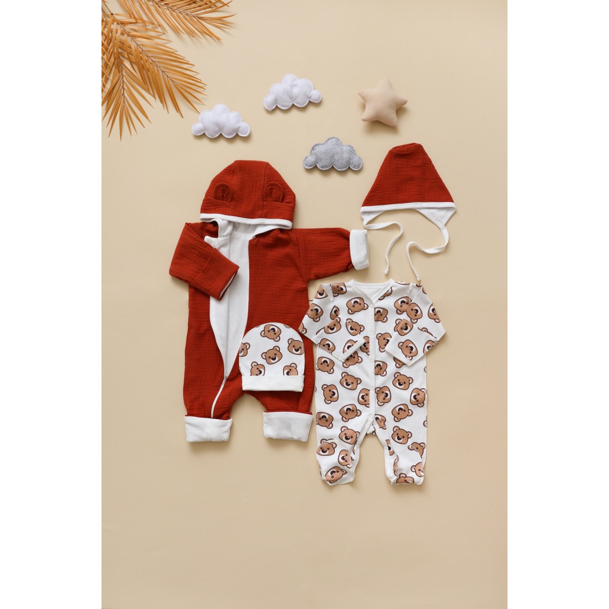 Муслиновый комплект на выписку и прогулки 6 предметов цвет: терракот 0317