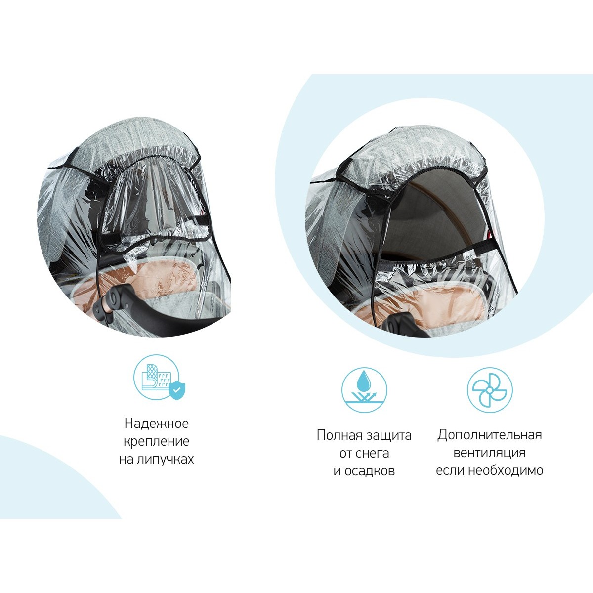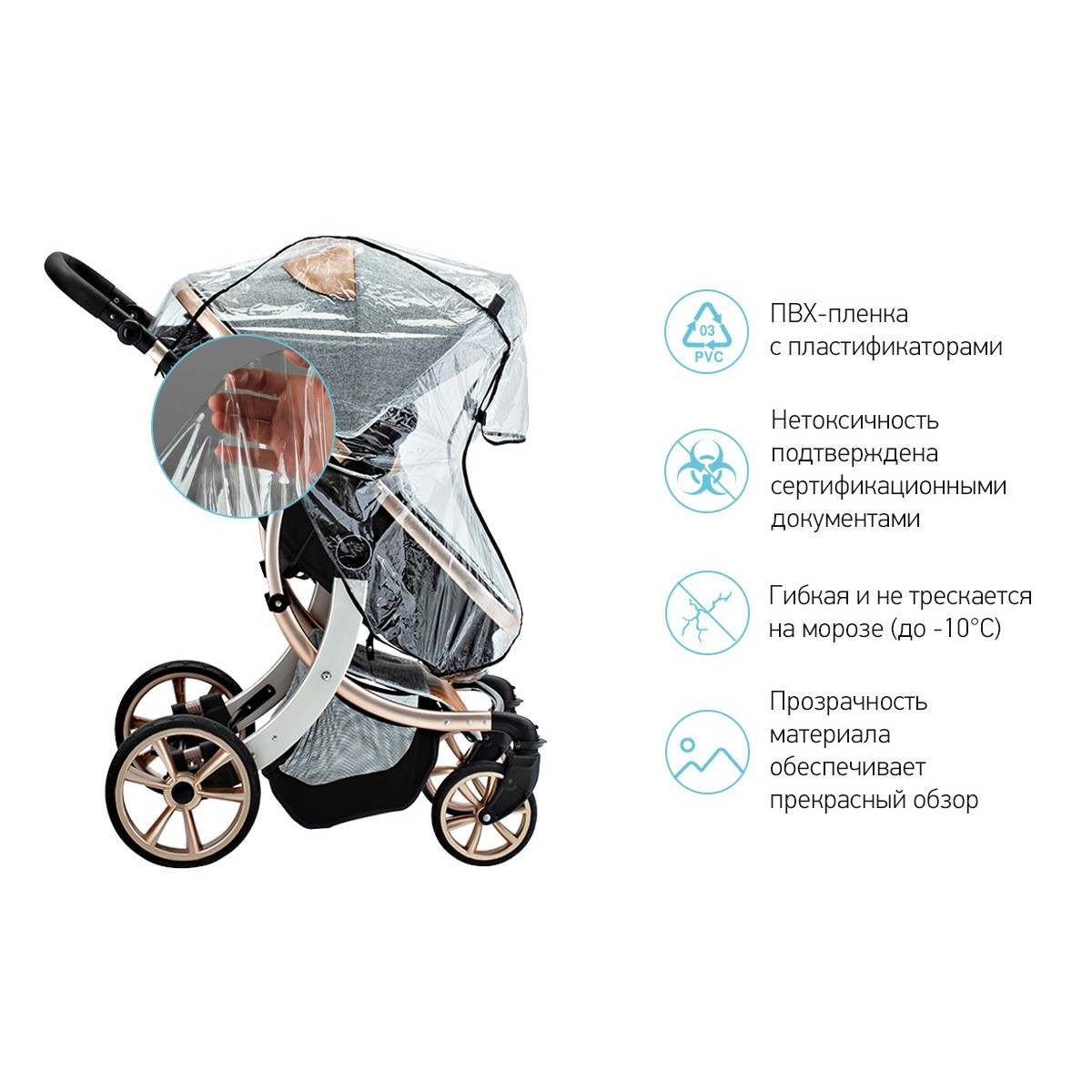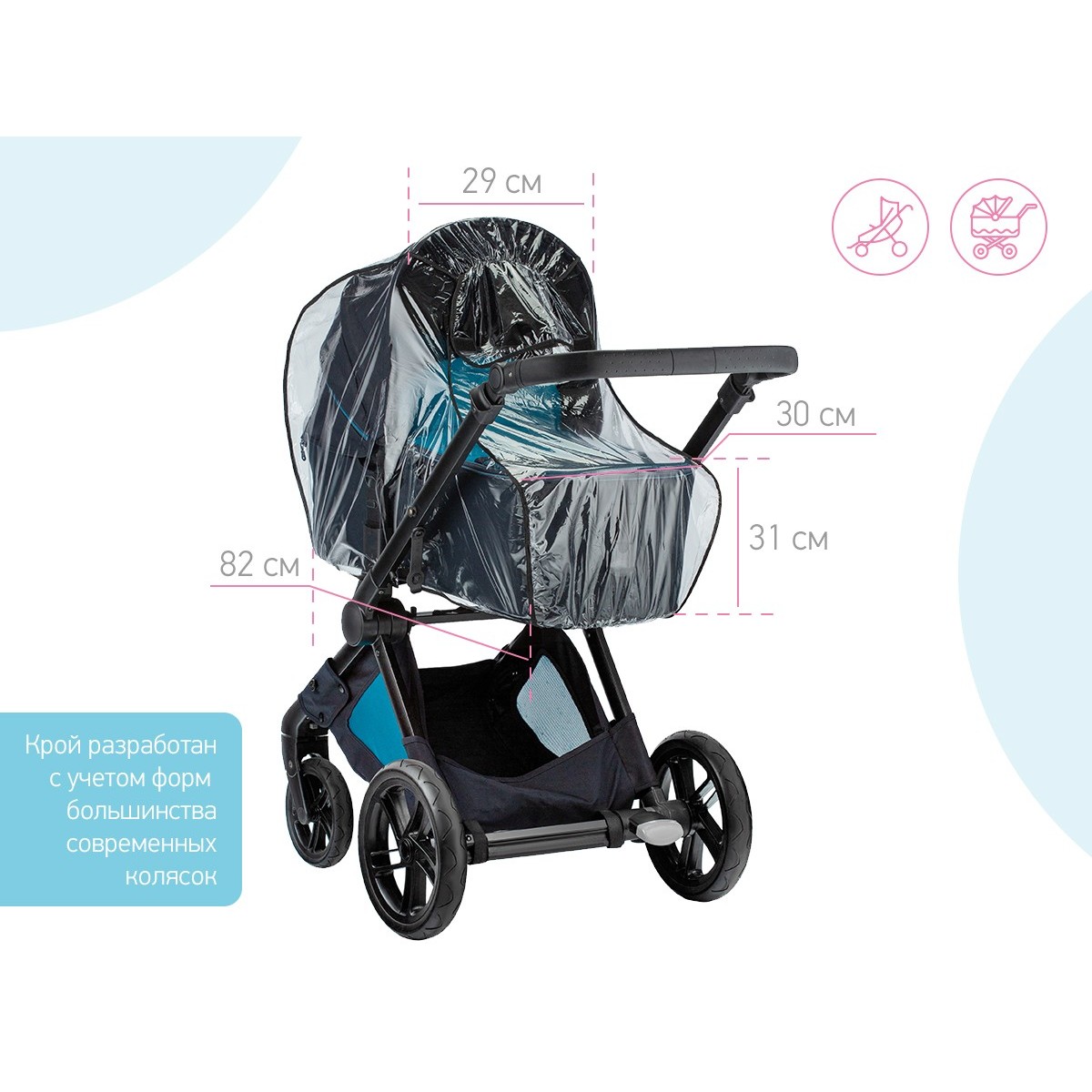 Дождевик на коляску поможет защитить малыша от дождя, снега или ветра в любую погоду. Дождевик это специальный чехол, который надевается на коляску. Ему не страшны сильный ливень и снегопад. Дождевик полностью прозрачен, малыш может наблюдать за происходящим на улице, а мама может видеть, что делает малыш. Специальный клапан на липучке поможет прикрыть окошко и защитить ребенка от осадков и сильного ветра. Крой дождевика разработан с учетом форм большинства современных колясок, резинки в нижней части изделия обеспечивают наилучшее облегание дождевика для всех типов колясок, швы дождевика герметичны, поэтому капельки воды и сквозняк не пройдут. Для обзора и вентиляции воздуха предусмотрено окно, оно закрывается на липучку, дождевик изготовлен из особо прочного эластичного полимера, который не трескается в зимний период, а также выдерживает осадки в виде града.