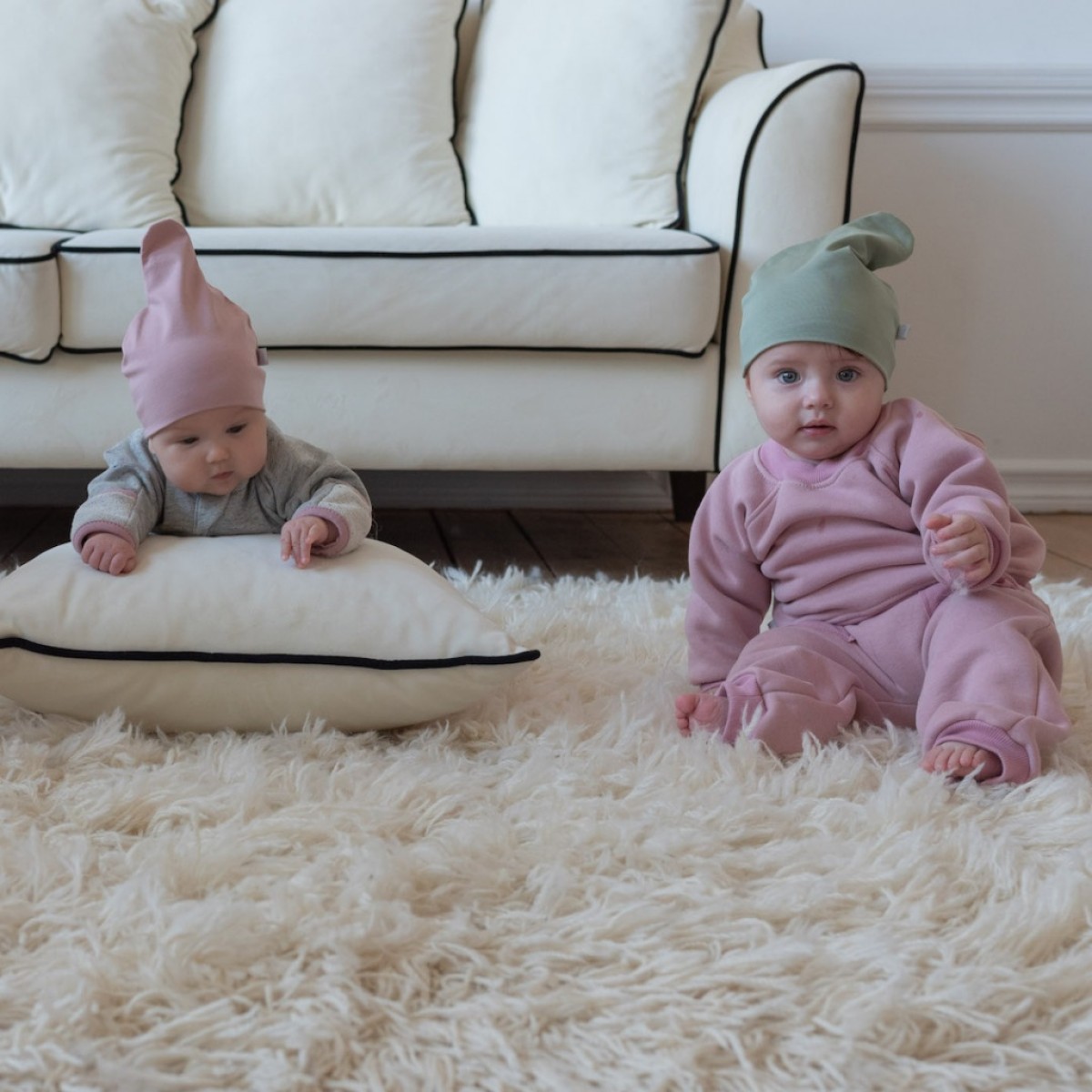 Ставшая уже классической, фирменная трикотажная шапочка "КоКоБи". Легкий, эластичный трикотаж, без лишних швов для комфорта ребенка.