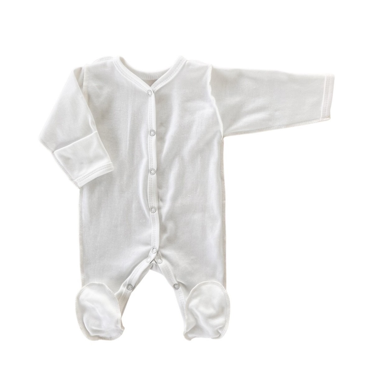 Слип на кнопках от шеи до стоп, с закрытыми ножками и швами наружу ( одежда не натирает нежную кожу малыша) , имеет на рукавах удобные отвороты-антицарапки.