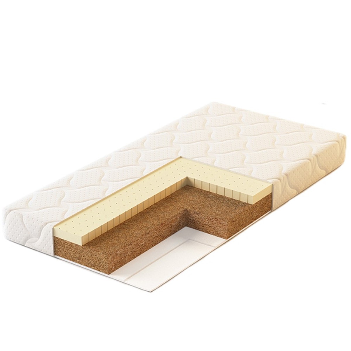 Двухсторонний ортопедический матрас премиум-класса на основе натуральных наполнителей – кокосовой койры и латекса. Природа наделила эти материалы именно теми свойствами, которыми должны обладать идеальные наполнители для детских матрасов. И латекс, и кокос отлично пропускают воздух, не боятся микробов и бактерий, не вызывают аллергии, не теряют упругости в процессе эксплуатации. Натуральная кокосовая койра, скрепленная натуральным латексом, признана одним из лучших наполнителей для детских матрасов, кроме того, она очень неприхотлива в уходе. На кокосовую сторону врачи-ортопеды рекомендуют укладывать новорожденных. Жесткая кокосовая койра «отвечает» за то, чтобы формирующийся позвоночник ребенка не прогибался. После года, когда косточки и скелет малыша окрепнут, матрас можно перевернуть на более мягкую сторону из анатомического латекса.