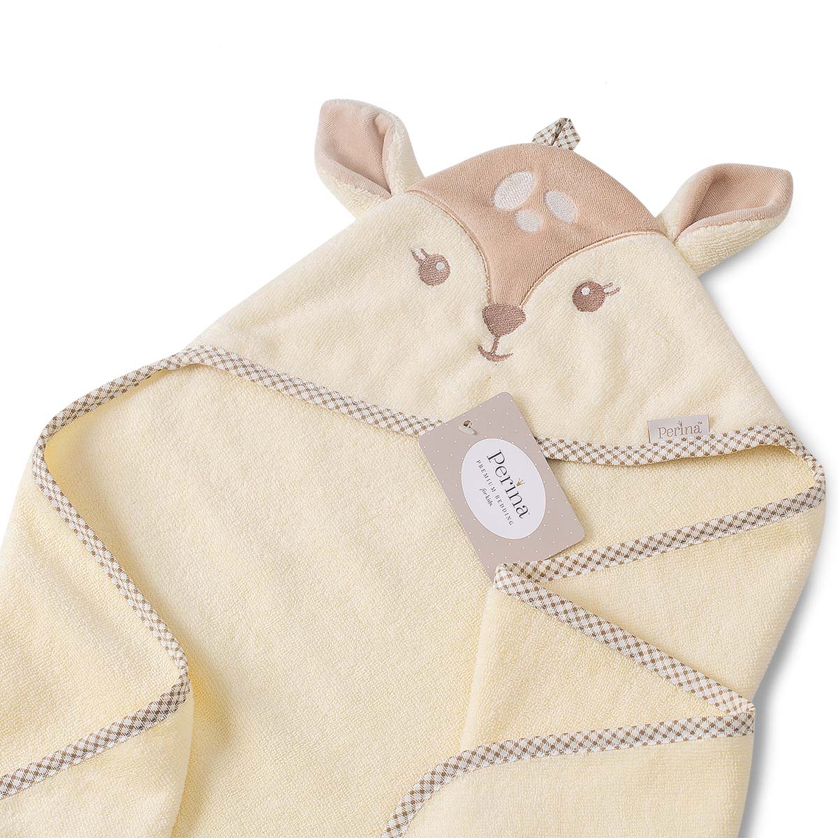 Мягкое детское полотенце из натурального особо мягкого хлопка "micro cotton" с олененком Бэмби на капюшоне. Махровая ткань остается мягкой после стирки и прекрасно впитывает воду. Размеры полотенца позволяют полностью укрыть малыша.