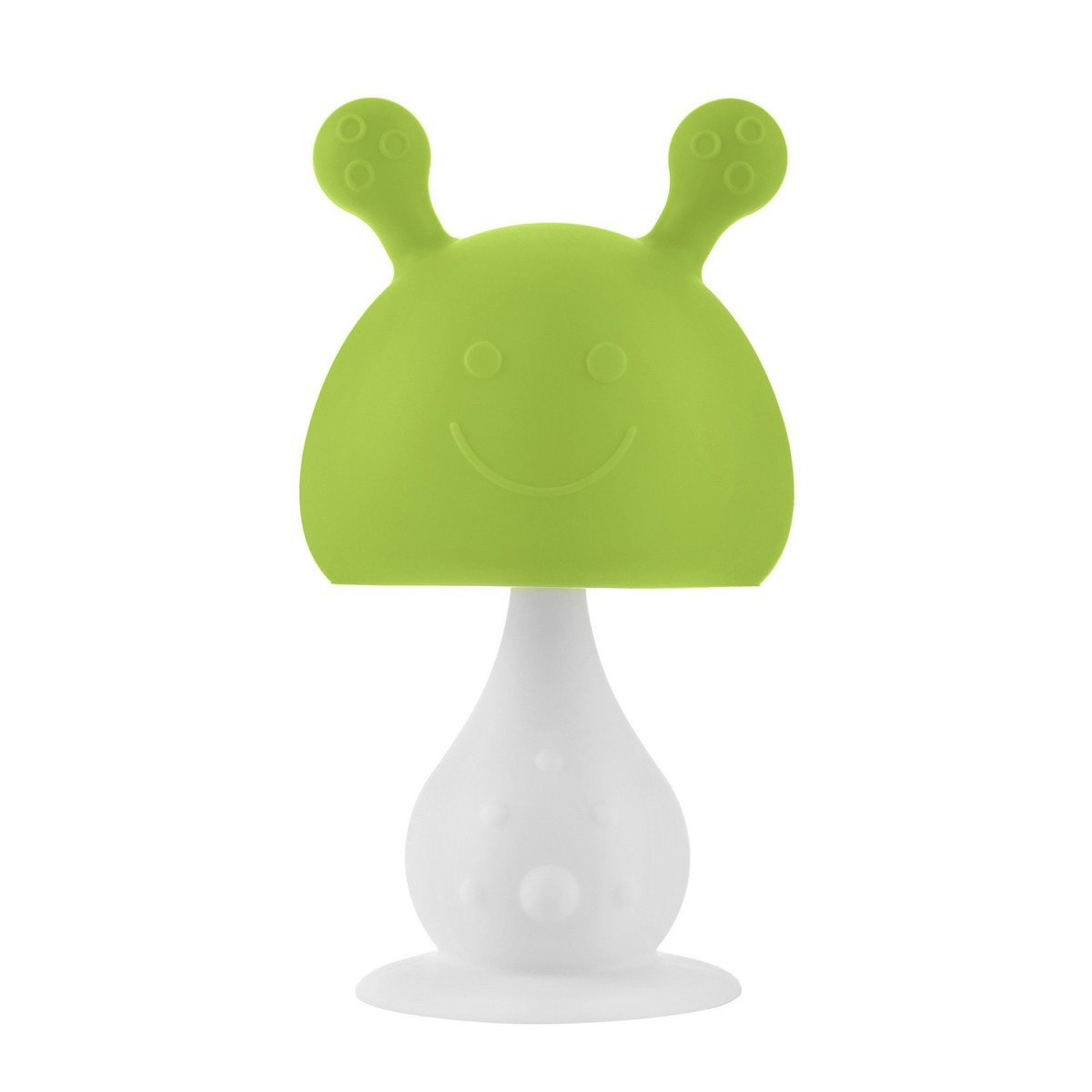 Прорезыватель для зубов MUSHROOM в форме грибочка безопасно массирует десны двумя ушками разной степени жесткости и снимает неприятные ощущения во время прорезывания зубов. Элементы в форме соска напоминают малышу мамину грудь. Кулачок малыша полностью помещается внутри полусферы грибочка. Ребенок крепко держит прорезыватель в кулачке и отучается от сосания пальца. Благодаря анатомической форме прорезыватель подходит для новорожденных и может выполнять функцию соски. Использование прорезывателя успокаивает малыша, развивает координацию и моторику рук, мелодичная погремушка внутри привлекает внимание и развлекает ребенка. С помощью присоски прорезыватель можно установить на столик или детский стульчик. В комплект входит держатель с надежной запатентованной клипсой, поэтому прорезыватель не упадет и не потеряется. Один конец держателя прикрепляется к прорезывателю, а второй при помощи специальной клипсы пристегивается к одежде ребенка. Держатель выполнен из двух слоев полиэстера, прочно сшитых вместе, поэтому он не износится и не порвется.
