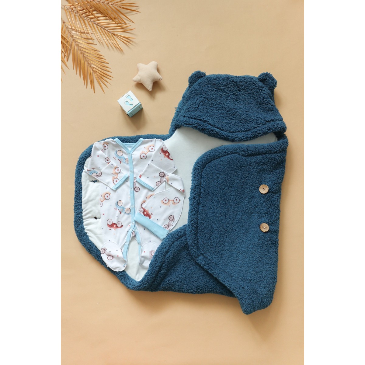 Эффект свободного пеленания подарит вашему малышу комфорт и дополнительное тепло во время прогулки. А если ваш малыш ещё спит, когда вы вернулись с прогулки - достаточно раскрыть (расстегнуть) одеяло и малышу не будет жарко.