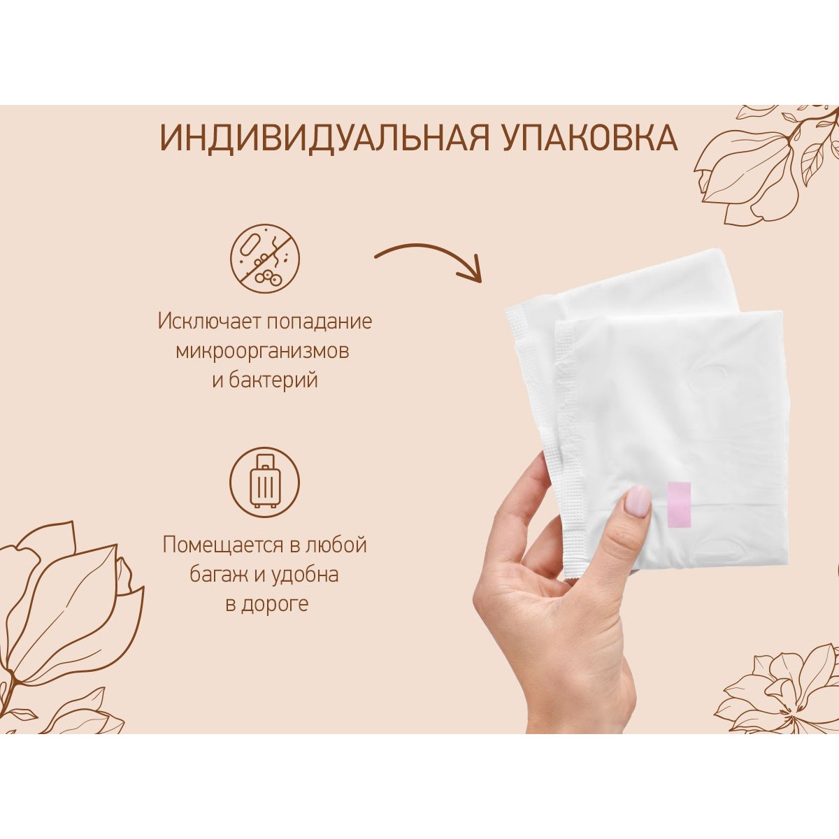 Мягкая поверхность и дышащий внешний слой делают использование прокладки абсолютно комфортным. Индивидуальная упаковка защищает изделие от воздействия окружающей среды и удобна для переноски.