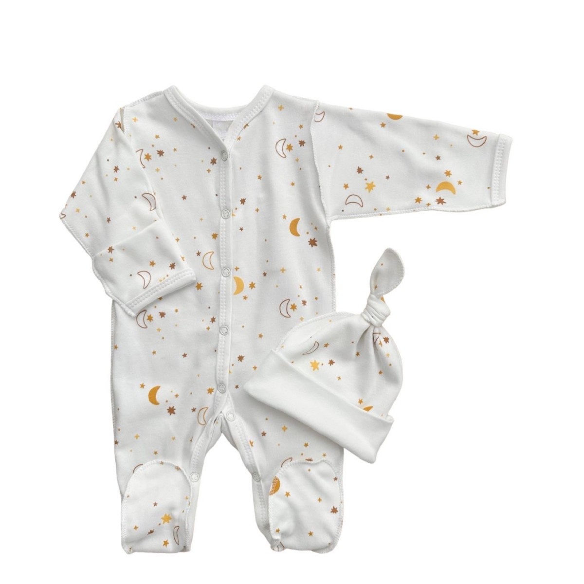 Комплект: Слип на кнопках + шапочка-узелок со швами наружу 56-62 см " Месяц и звездочки" Т-097
