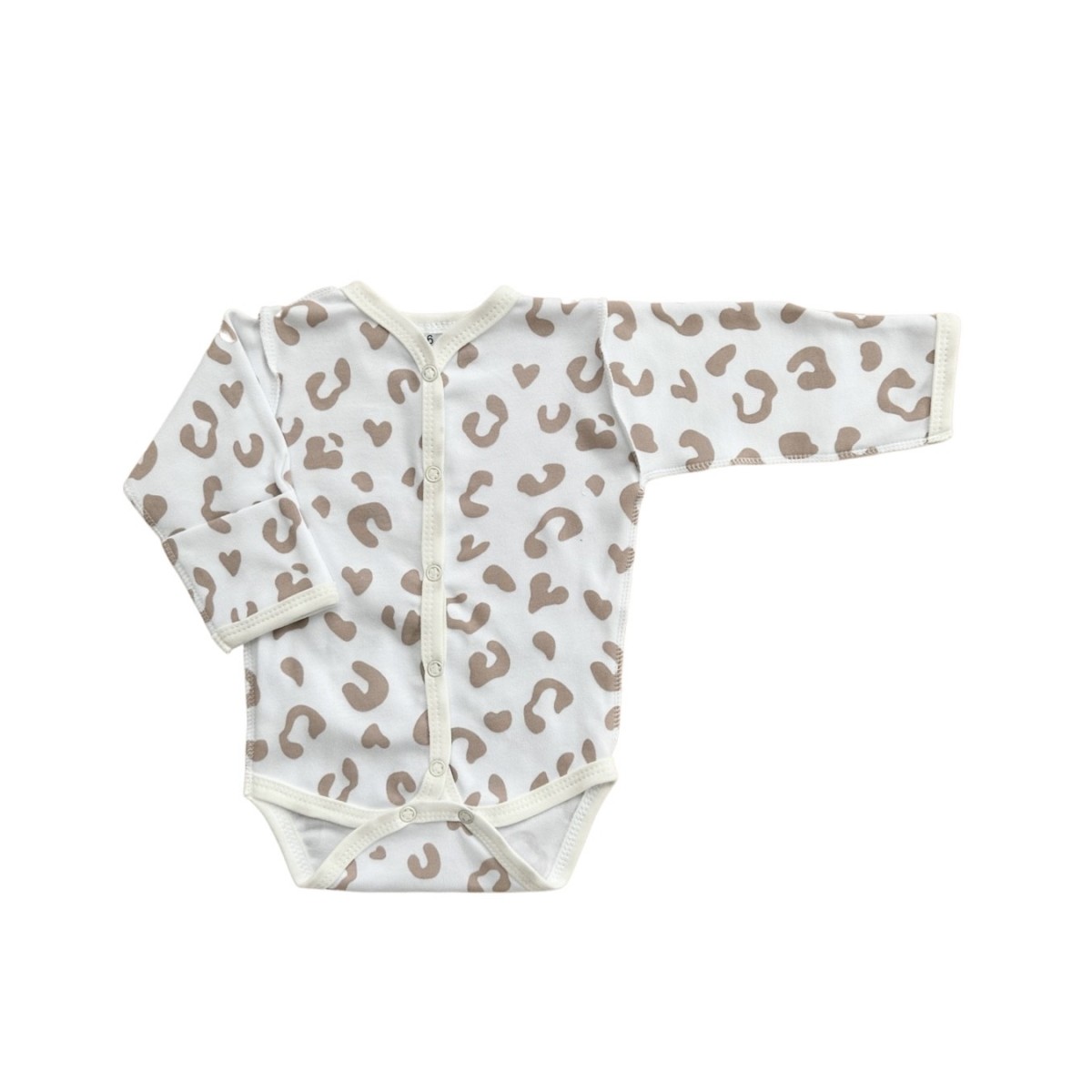 Полностью на кнопках, очень удобно одевать, не нужно лишний раз тревожить кроху , одевая боди через голову : просто расстёгиваете боди сверху донизу , кладёте малыша и застёгивайте . Со швами наружу и отворотными ручками-антицарапками.