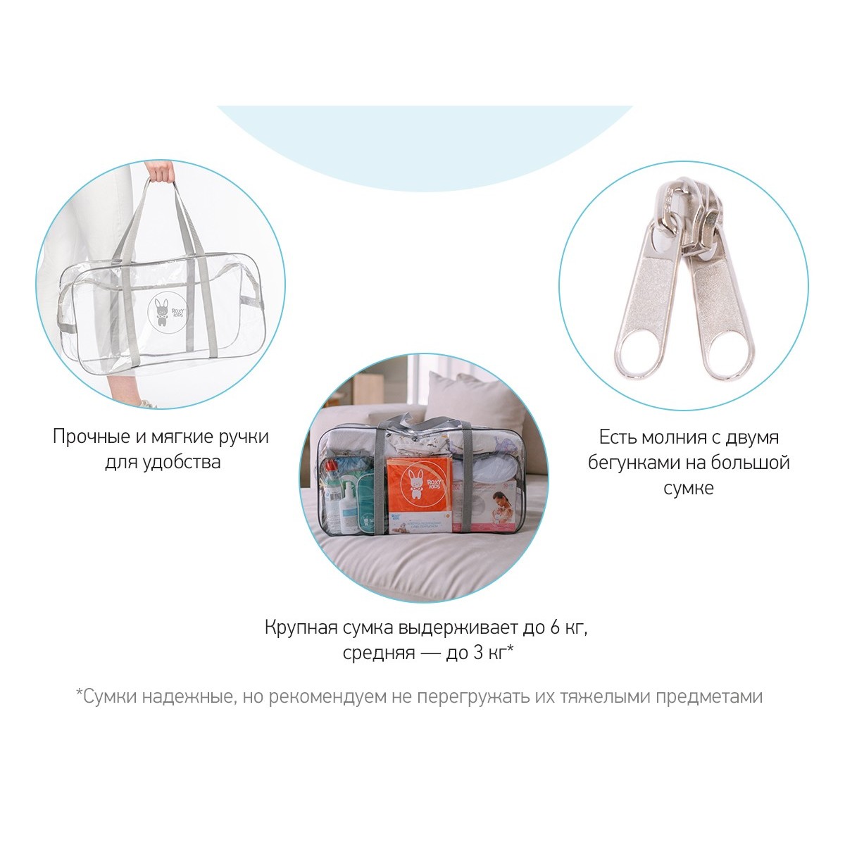 Прозрачная сумка в роддом— нужный и полезный аксессуар, который поможет будущей маме подготовиться к встрече с малышом. Она позволит вместить все необходимое: товары для мамы до и после родов, вещи для новорожденного, предметы гигиены, документы и медикаменты. Изделие сертифицировано в Eurofins и разрешено в родильных домах и лечебных учреждениях.