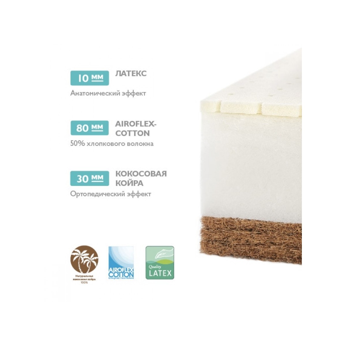 -Основа матраса - блок из экологически чистого, упругого материала Airoflex-cotton.