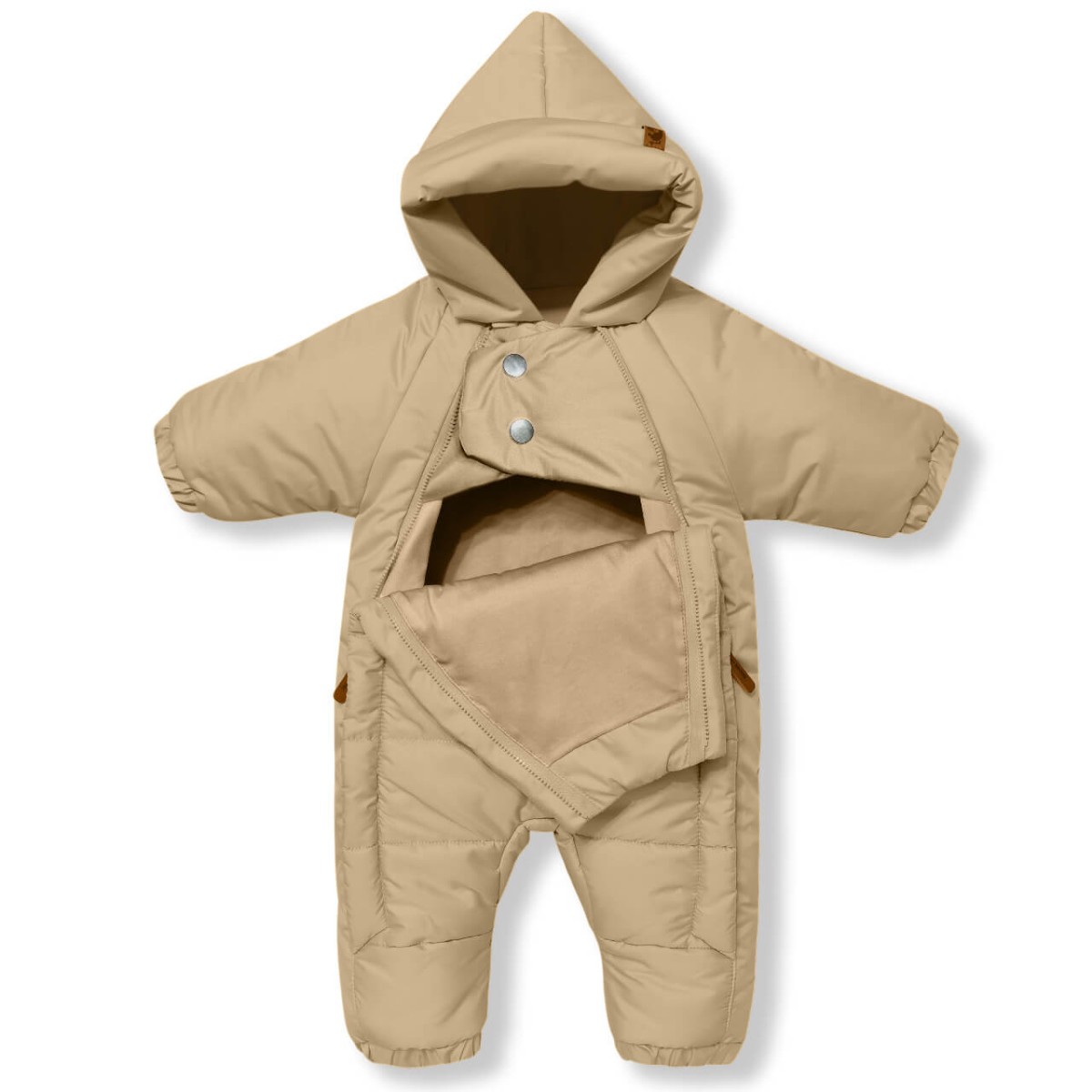 Демисезонный комбинезон для малышей с рождения. Имеет две молнии для легкого одевания малыша. Манжеты на ручках и ножках отворачиваются, удобная ветрозащита на кнопках, глубокий капюшон защищает от ветра и имеет затяжки для лучшего прилегания.