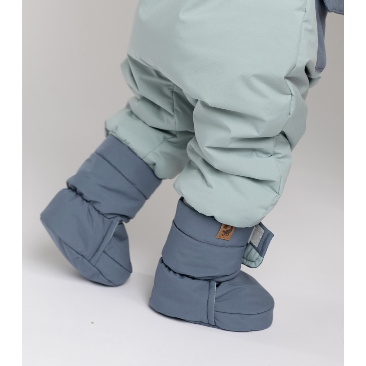 Выполнены из непромокаемой и непродуваемой ткани. Удобно обуть на ножку, на липучках.
