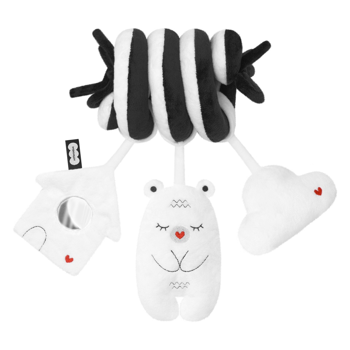 Черно-белая игрушка-спираль с погремушкой «Мишка» — это универсальная развивающая игрушка, которая заинтересует любого малыша с самого рождения.