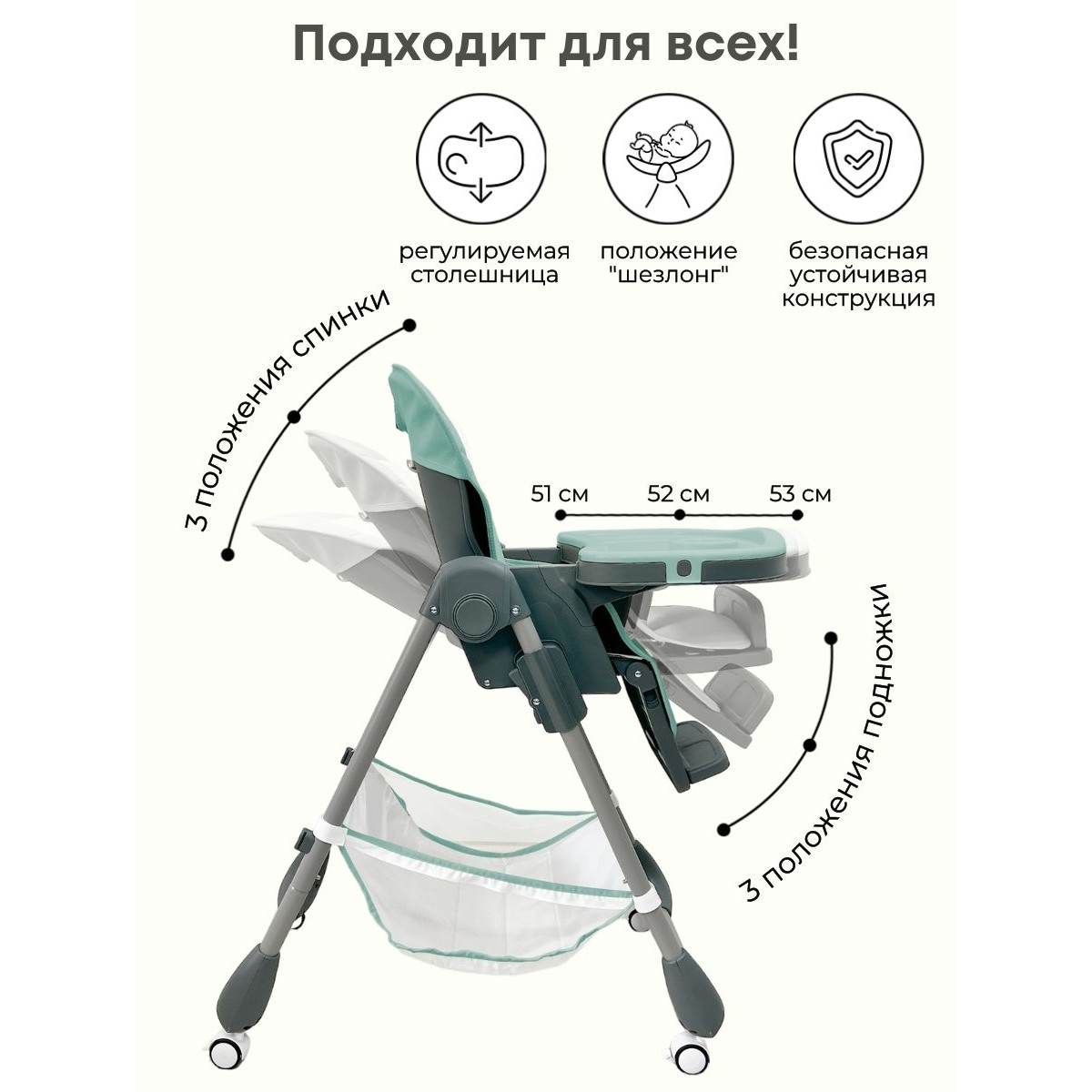 Ограничитель между ножек от сползания, пятиточечные ремни, колесики со стопорами надёжно отвечают за безопасность ребёнка. Сами колесики, кстати, сделаны из высокопрочной резины, поэтому не поцарапают даже нежный паркет. При желании колеса можно вообще снять и оставить стул на ножках с резиновыми вставками.