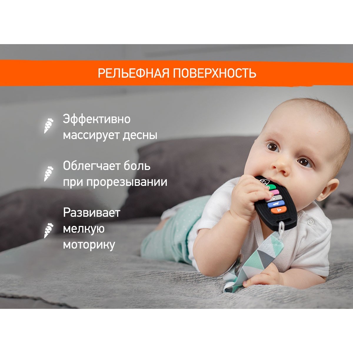 Реалистичный прорезыватель в виде пульта для автосигнализации – яркая и интересная игрушка, которая порадует вашего малыша и поможет снизить дискомфорт во время прорезывания зубов!
