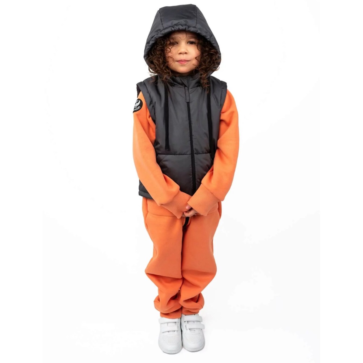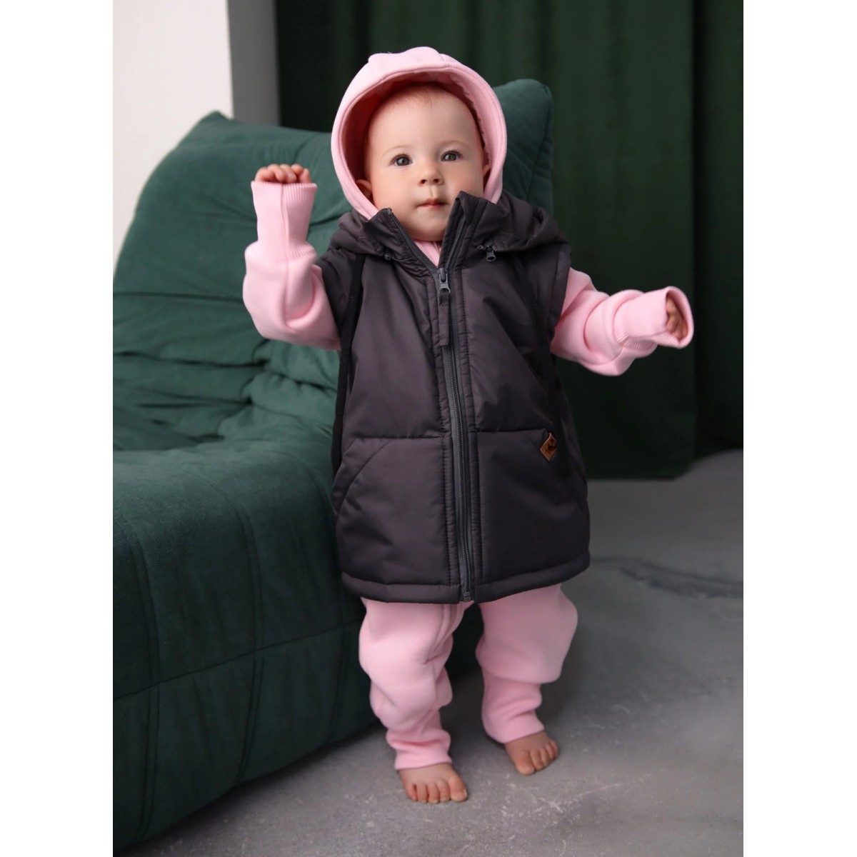 Удобная демисезонная жилеточка со съемным капюшоном. Спаренный размер позволяет носить такую жилетку не один сезон.