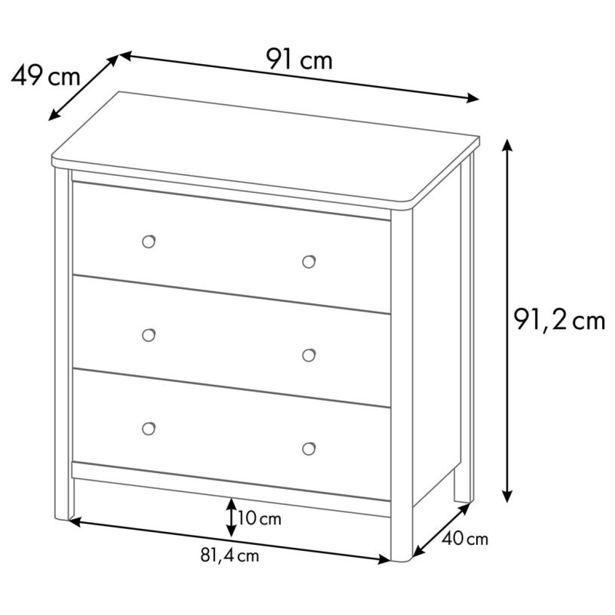Габариты изделия (ДхГхВ):91х49х91,2 см.