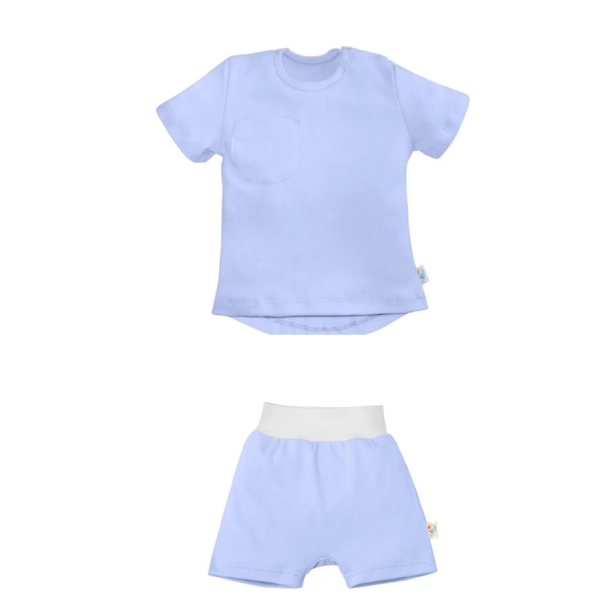 Футболка с коротким рукавом, удлиненной спинкой и карманом на груди. Две кнопки на плече для удобства одевания.