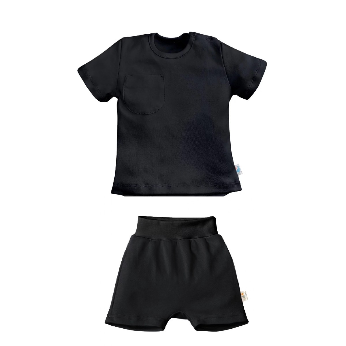 Футболка с коротким рукавом, удлиненной спинкой и карманом на груди. Две кнопки на плече для удобства одевания.