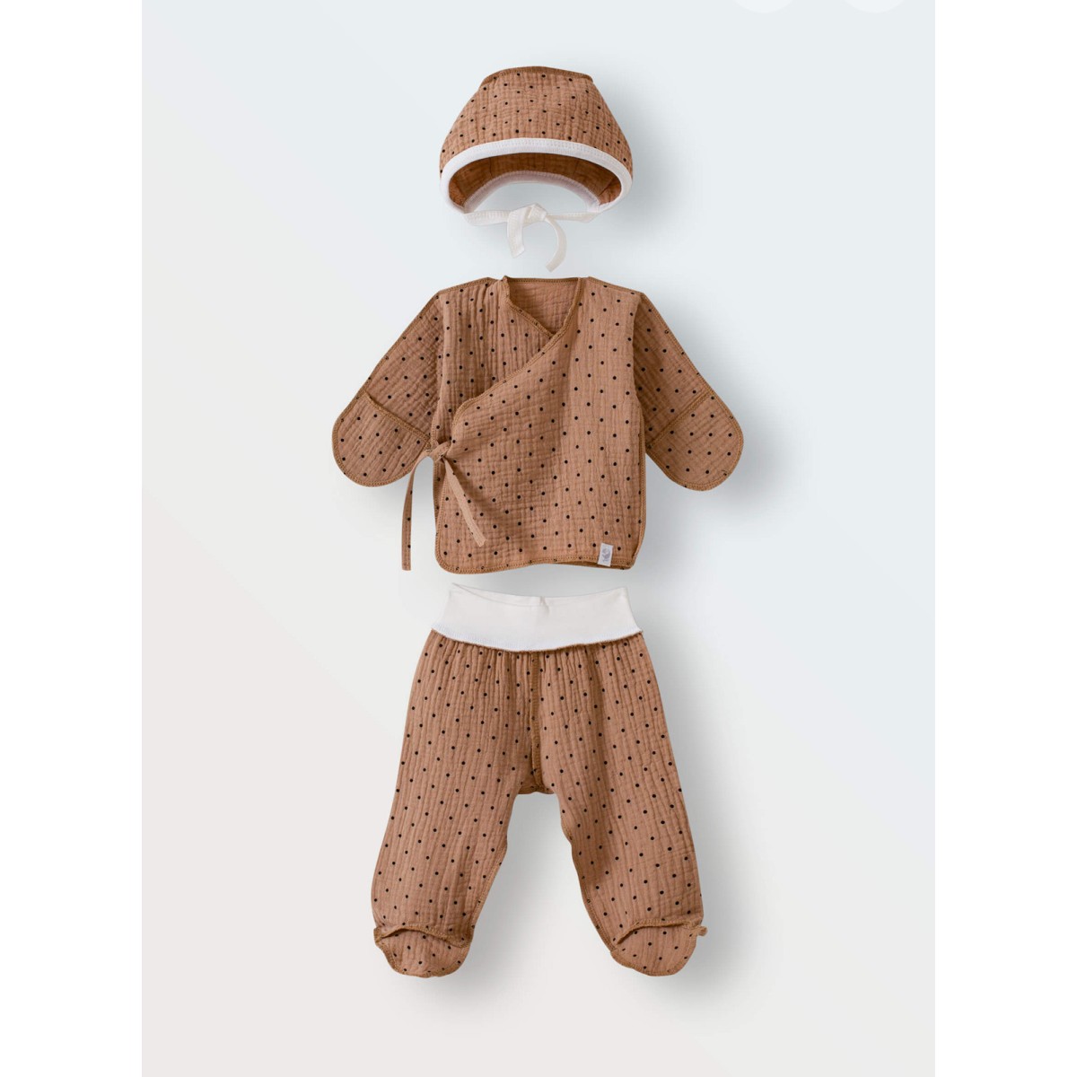 Комплект одежды из муслина 3 предмета 62 см цвет: горошек на коричневом 9050-145
