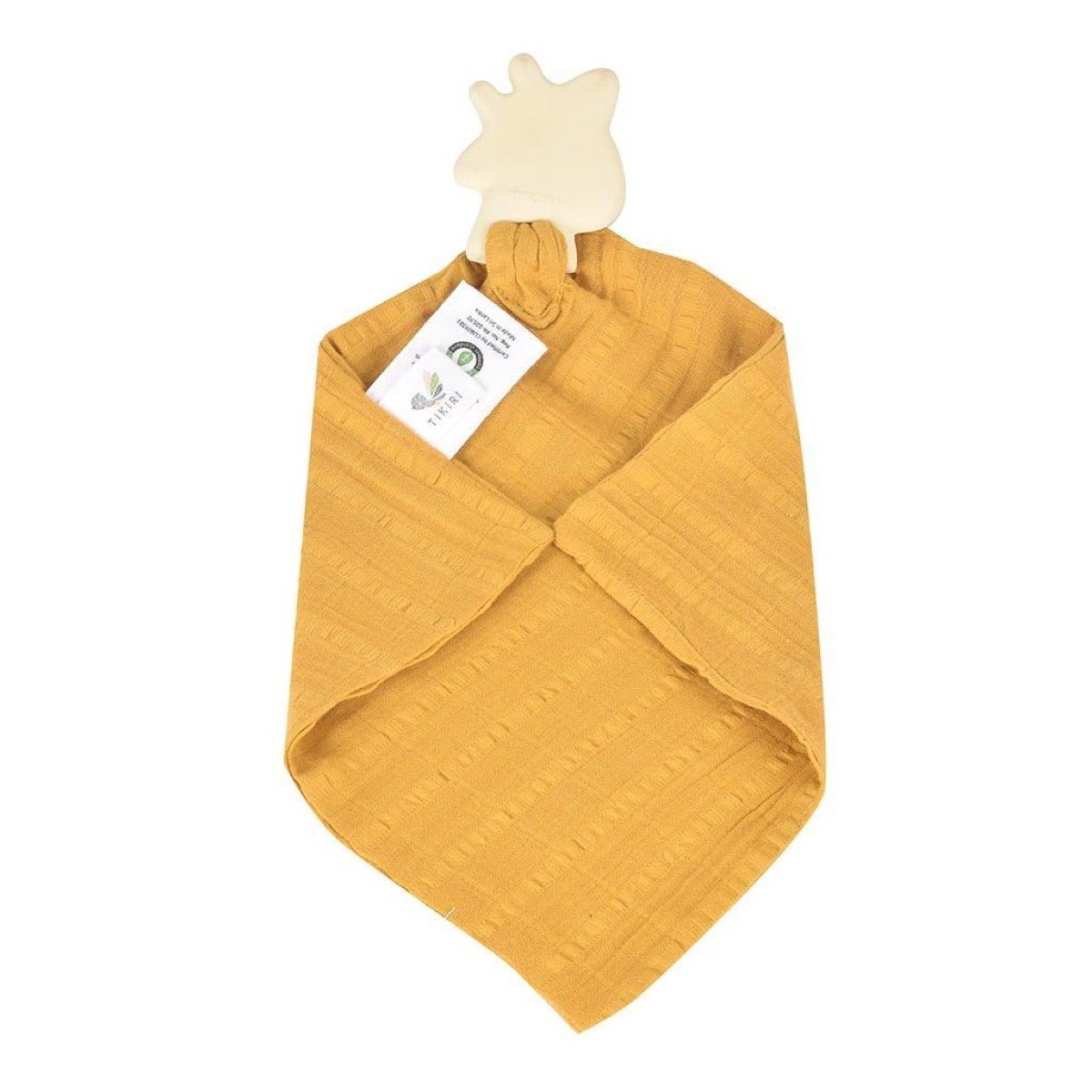Прорезыватель-платочек сделан из органических материалов: органический хлопок и натуральный каучук.