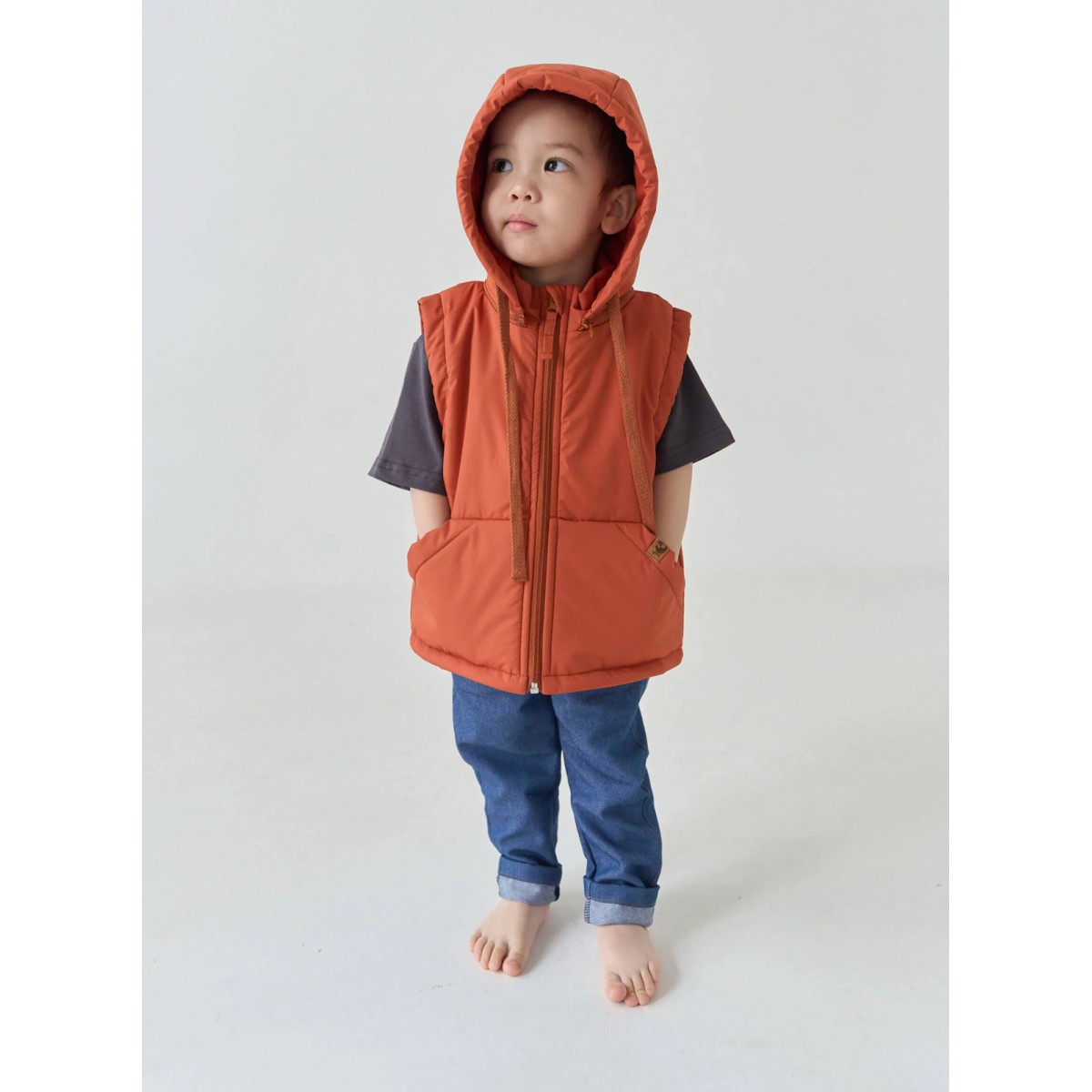 Удобная демисезонная жилеточка со съемным капюшоном. Спаренный размер позволяет носить такую жилетку не один сезон.