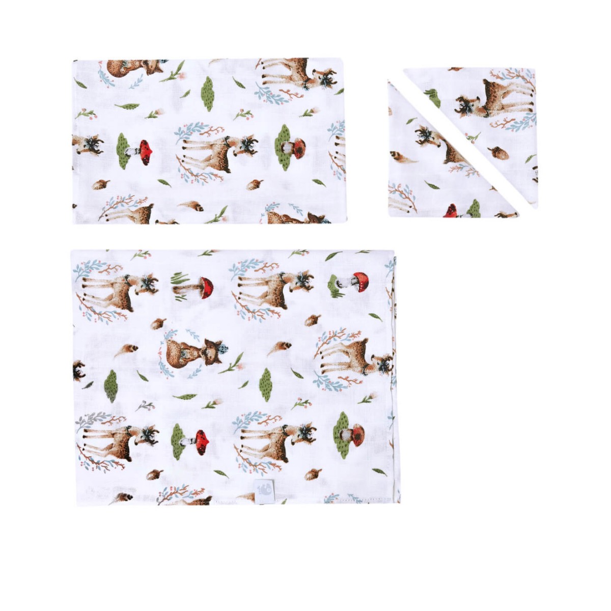 Комплект муслиновых пеленок 2 шт + 2 платочка " Лисичка и Олененок " 2006-139