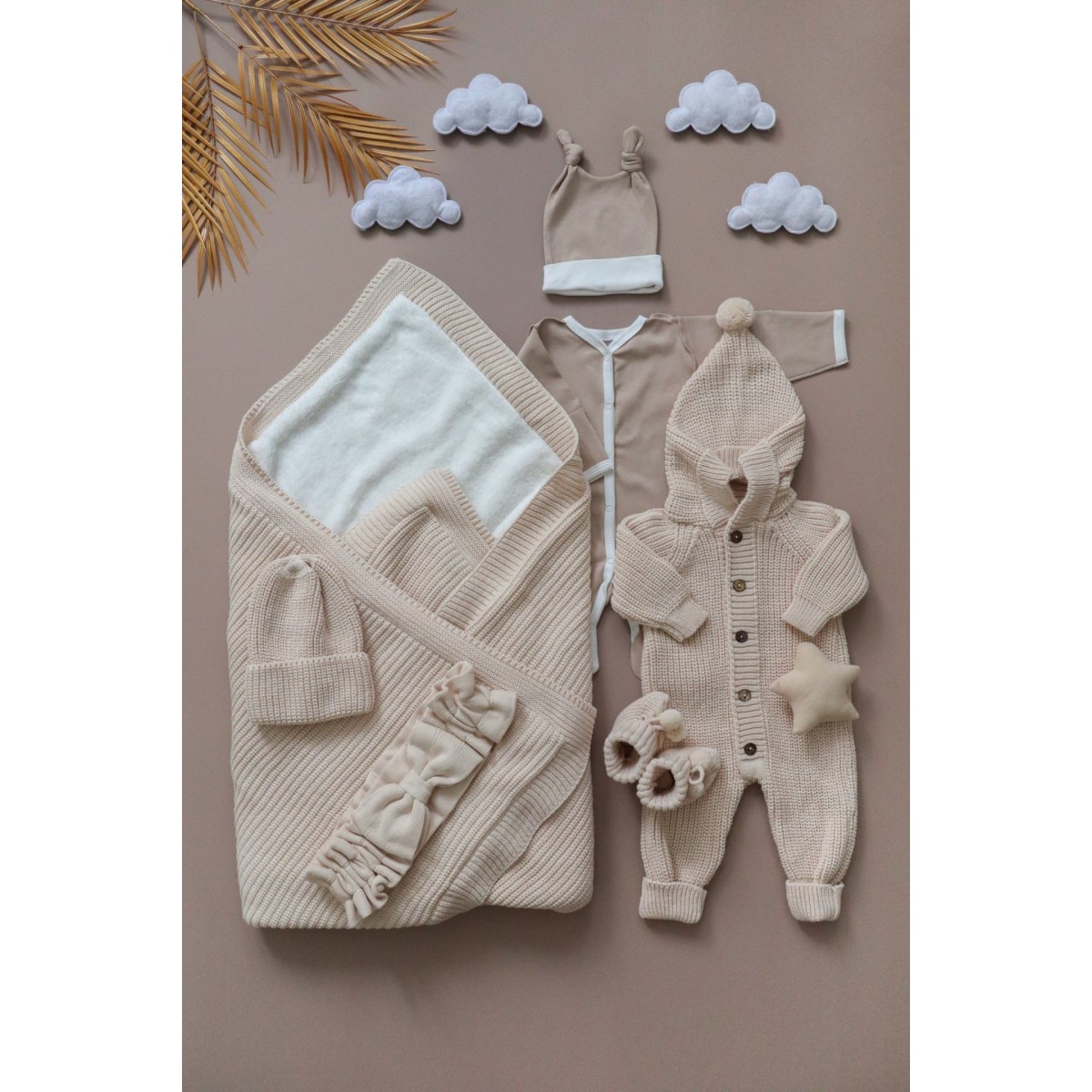 Комплект вязаный из 8-и предметов.