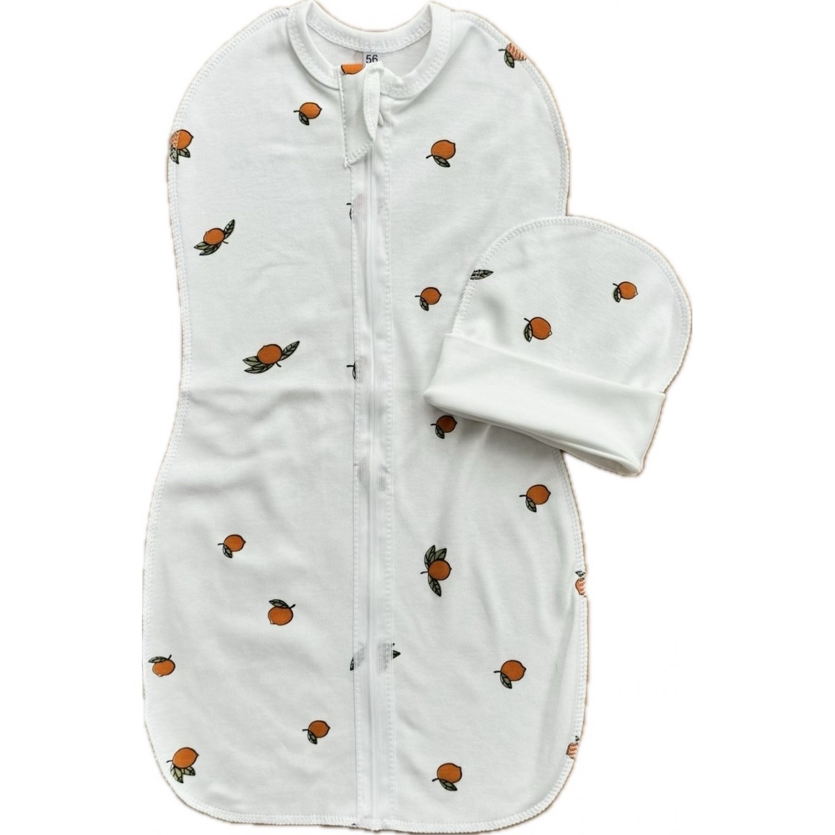 Пеленка-кокон на молнии с шапочкой 56-62 см принт: апельсинки Т-007