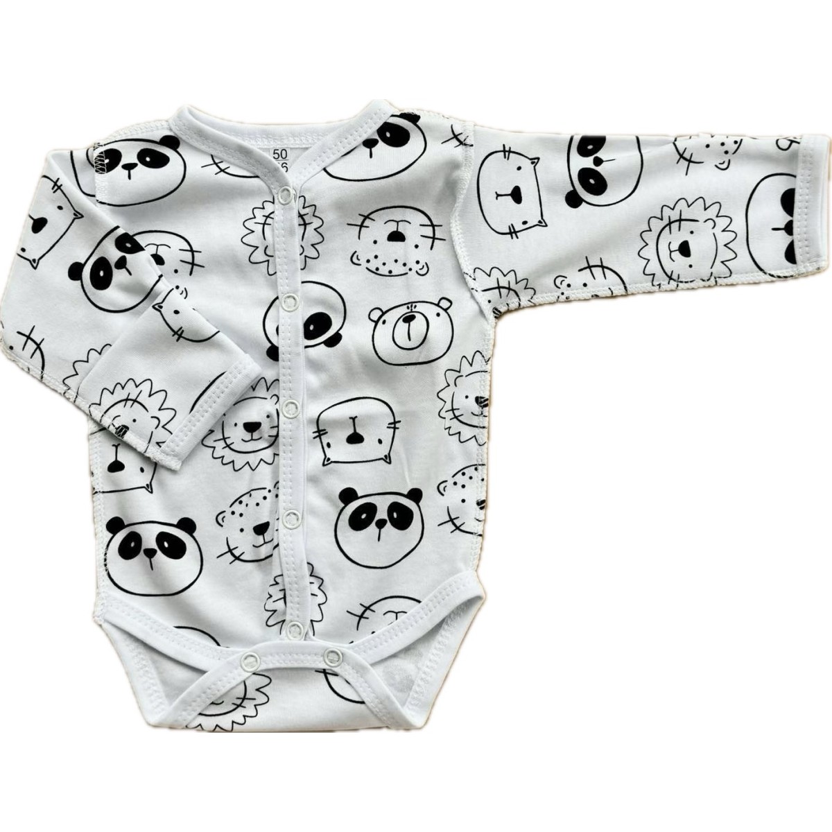 Боди с длинным рукавом на кнопках Newborn 50 см принт: пандочки и львята Т-131