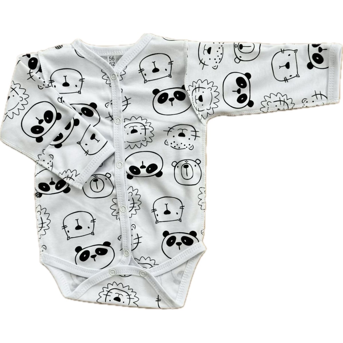 Боди с длинным рукавом на кнопках 56-62 см принт: пандочки и львята Т-131