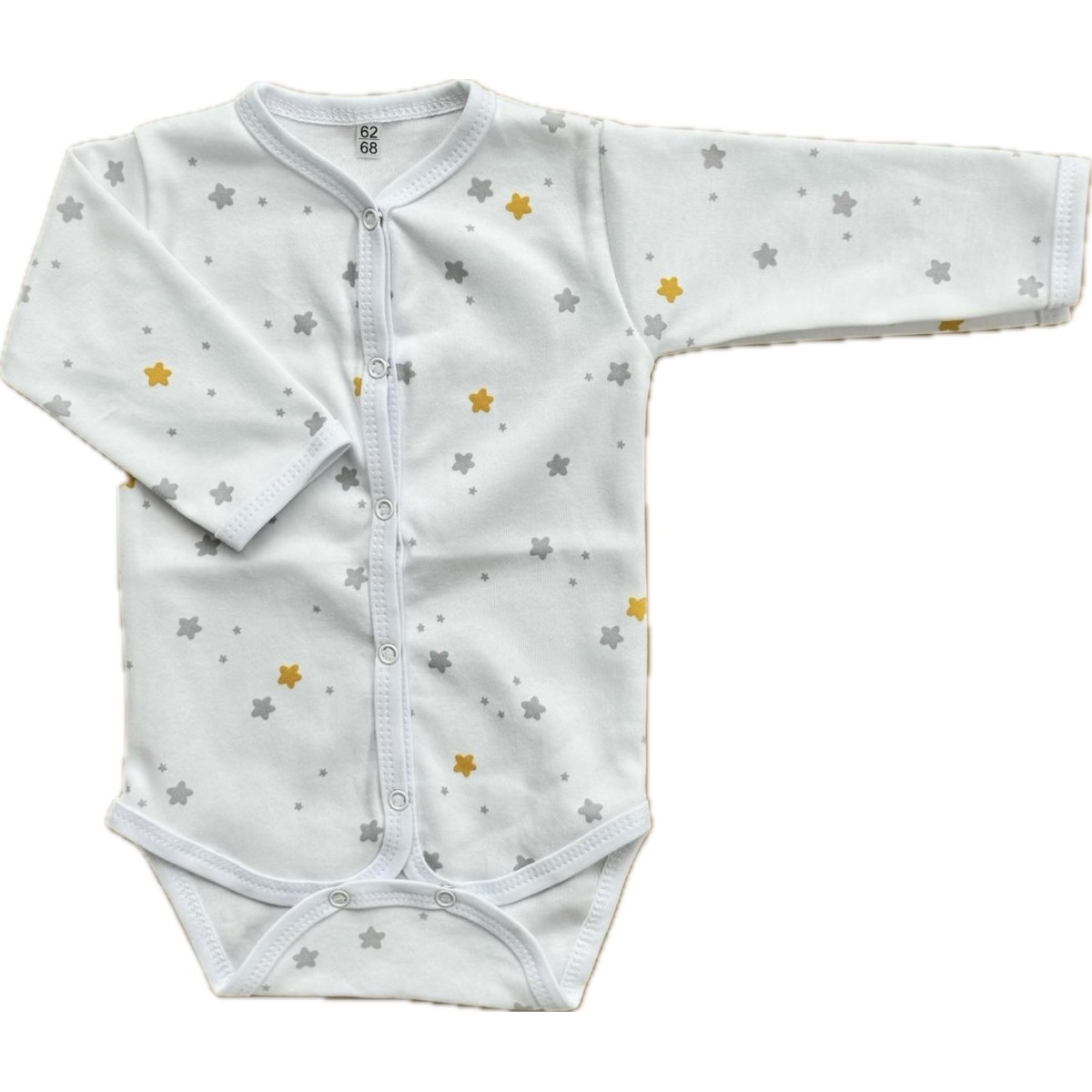 Полностью на кнопках, очень удобно одевать, не нужно лишний раз тревожить кроху , одевая боди через голову : просто расстёгиваете боди сверху донизу , кладёте малыша и застёгивайте .