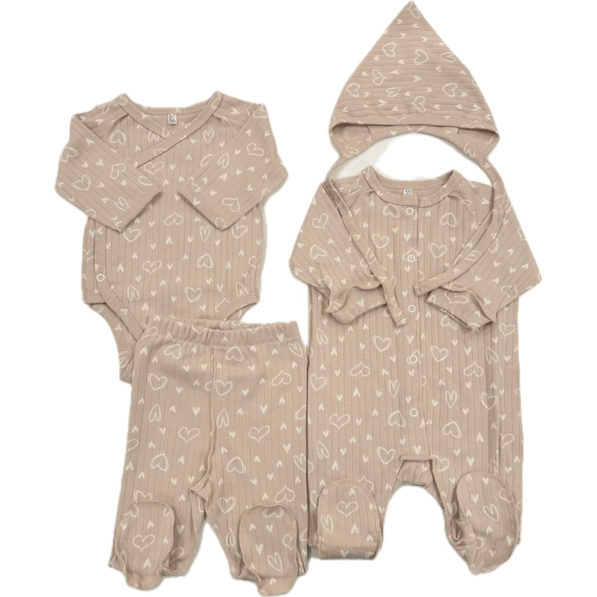 Комплект для малыша 4 предмета 50-56 см цвет: пудровые сердечки Т-231