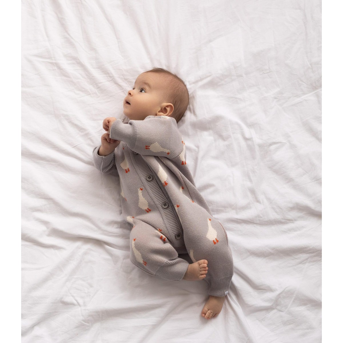 Наш вязаный комбинезон с принтом «гуси» — это воплощение заботы и комфорта для вашего крохи. Мягкая, словно облако, хлопковая пряжа окутает малыша нежностью и подарит ему ощущение тепла и уюта.