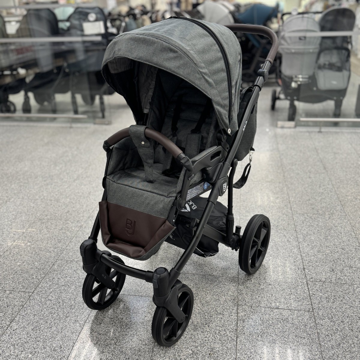 Коляска BJOY MIA предназначается для малышей с рождения до трех лет. За счет рамы из алюминия, новаторской подвески и поворотных колес, коляска обладает плавным ходом и отличной маневренностью. Ширина шасси позволяет комфортно передвигаться по узким улицам и тротуарам.