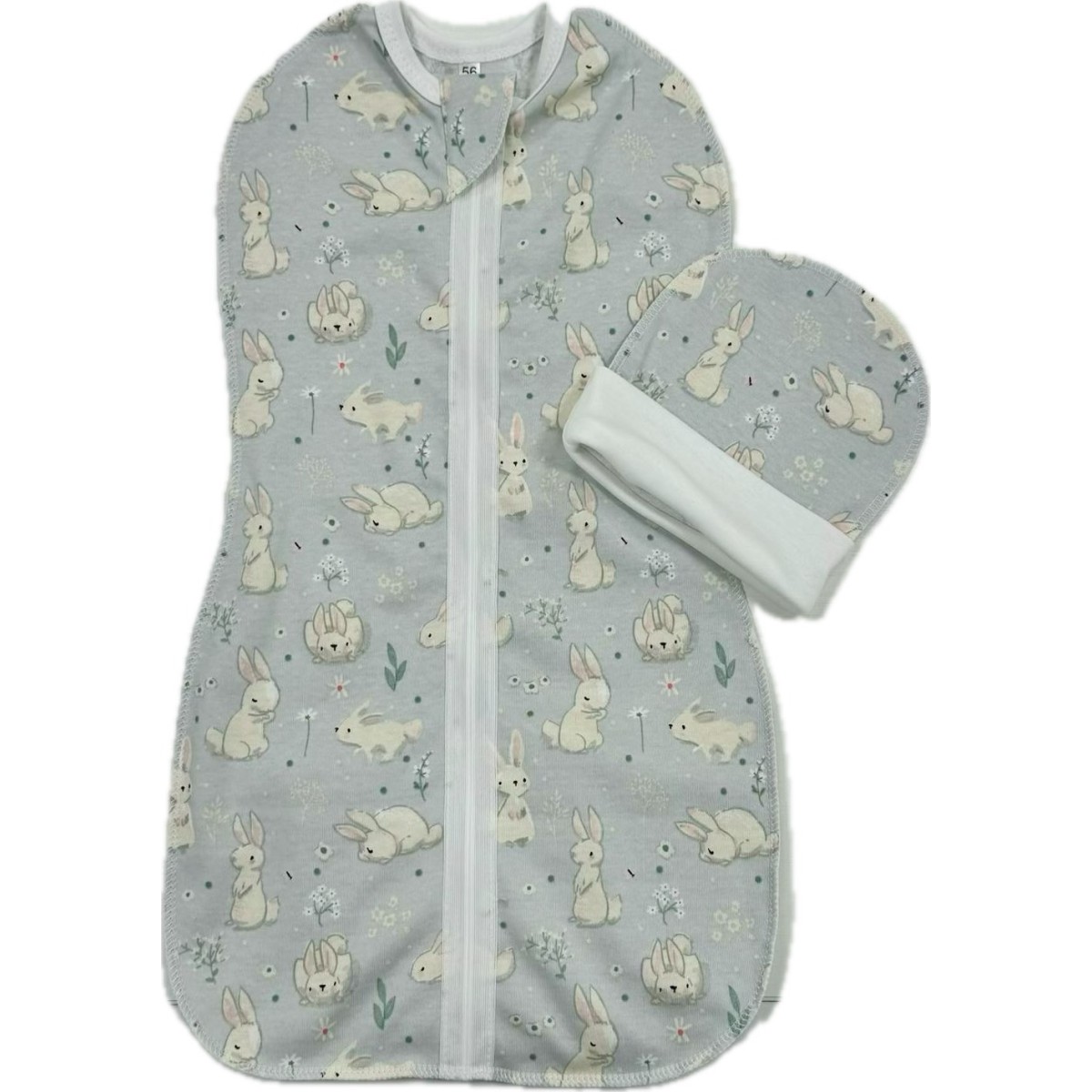Пеленка-кокон на молнии с шапочкой 50-56 см принт: зайки на голубом Т-007