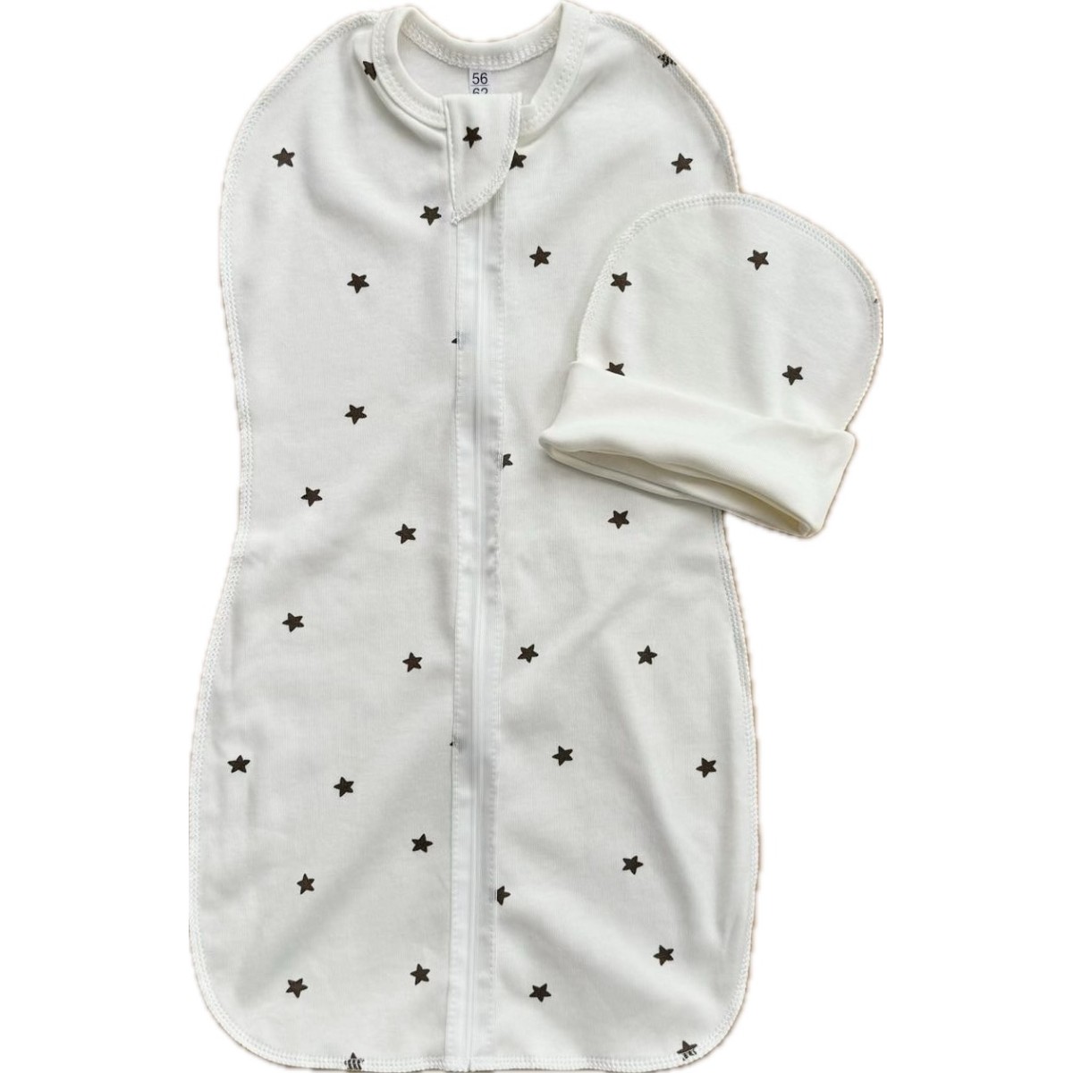 Пеленка-кокон на молнии с шапочкой 50-56 см принт: звездочки монохром Т-007