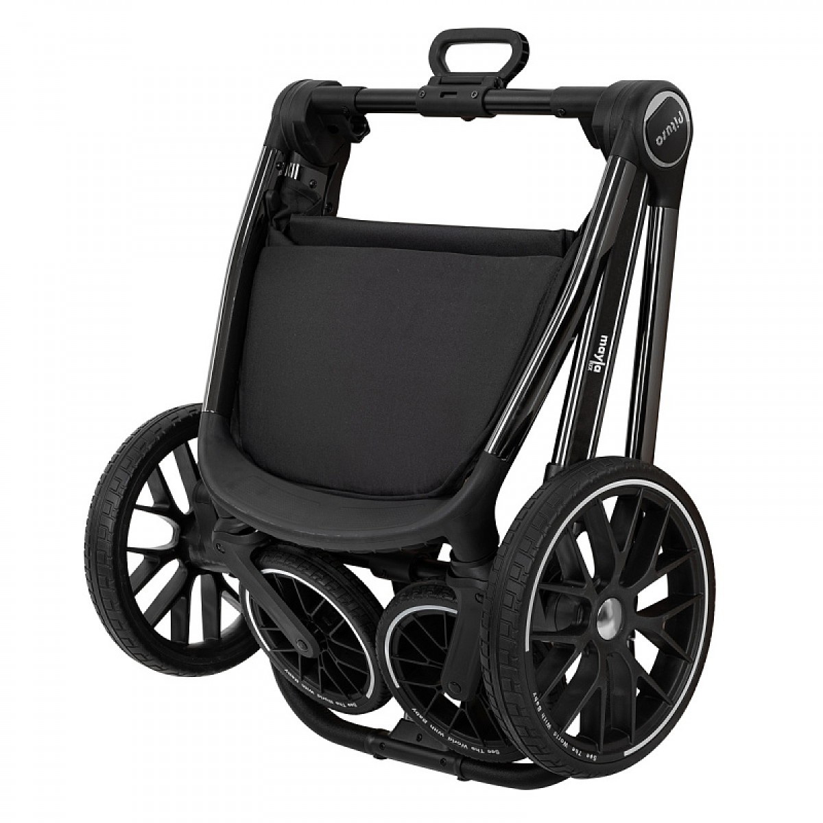 Рама из облегченного алюминия с покрытием Black Chromeимеет повышенную износостойкость и компактно складывается по типу "книжки" вместе с прогулочным блоком.