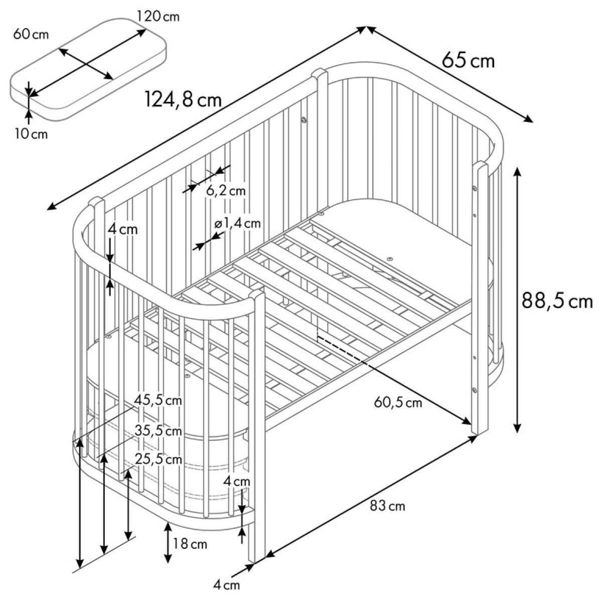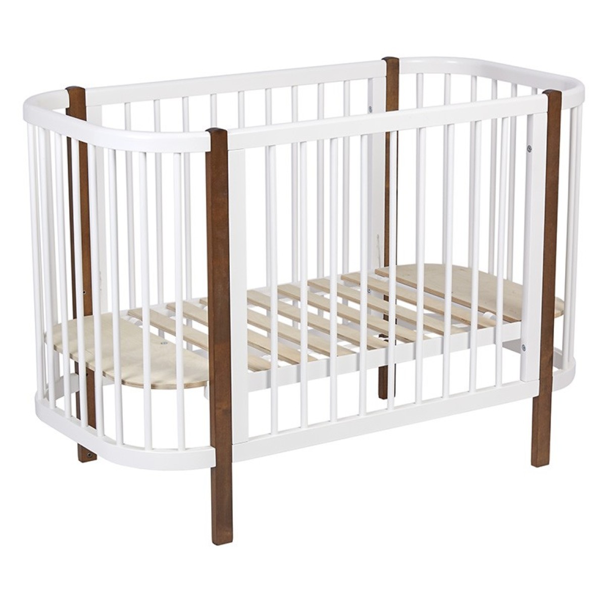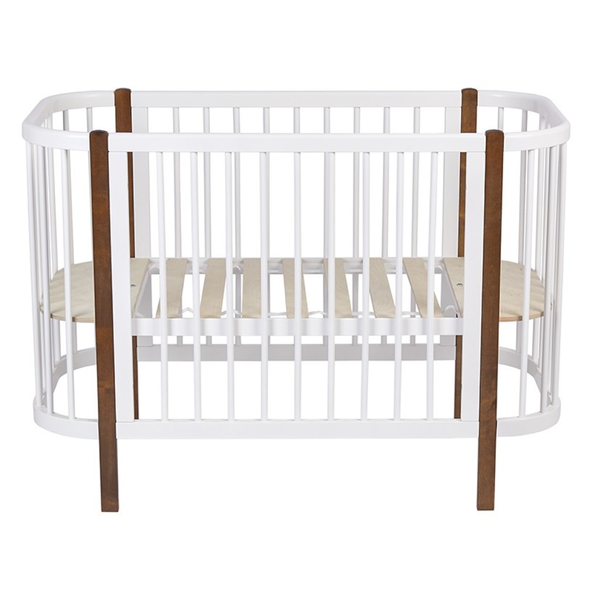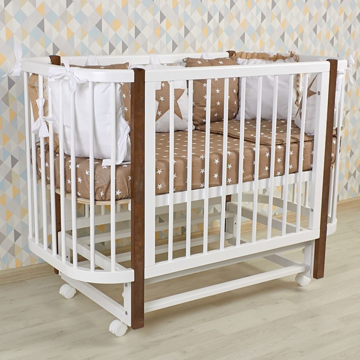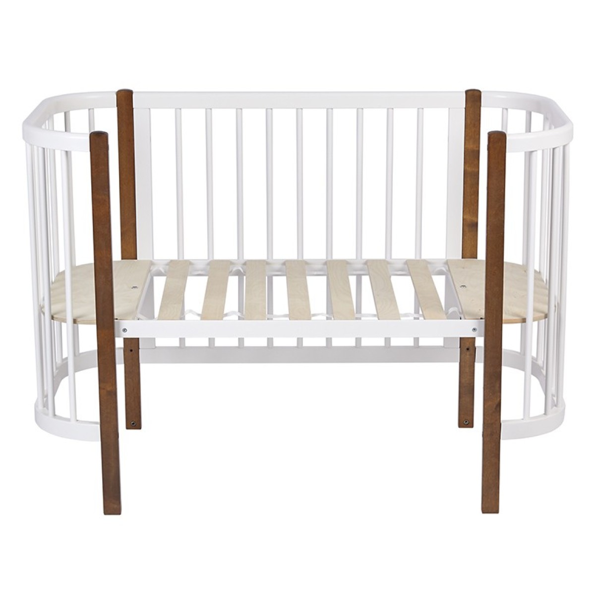 -передняя стенка снимается и кроватка превращается в приставную;