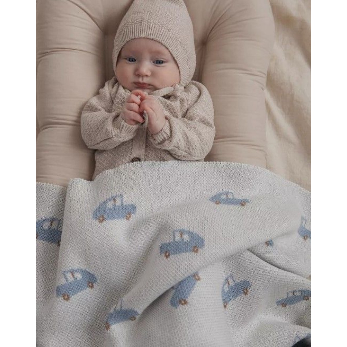 Вязаный детский плед Машинки 80*120 см цвет: кремовый LW23-5003-013-80/120