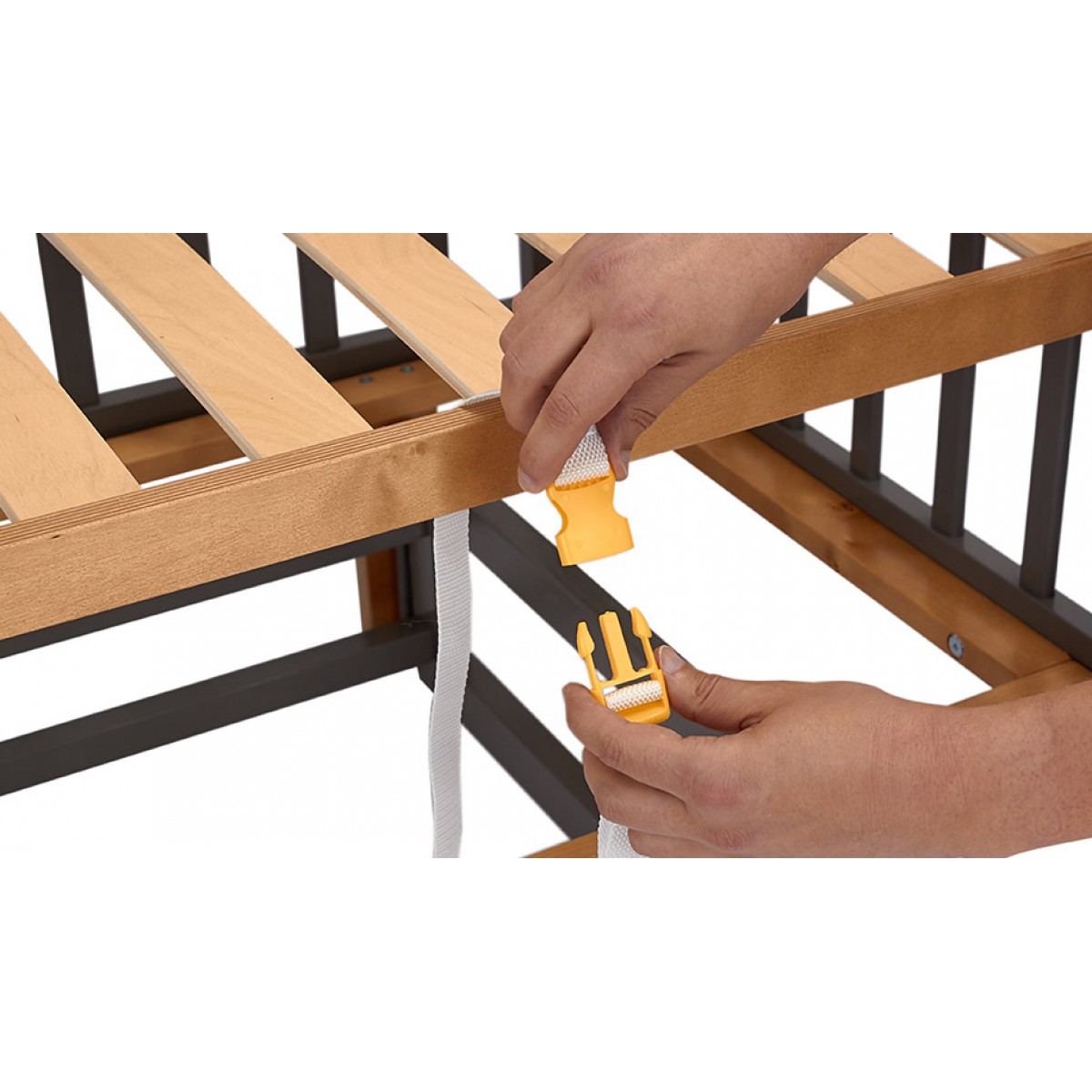 Запрещено использование кровати в качестве приставной без фиксирующих ремешков. Изделие должно быть обязательно зафиксировано перед использованием!