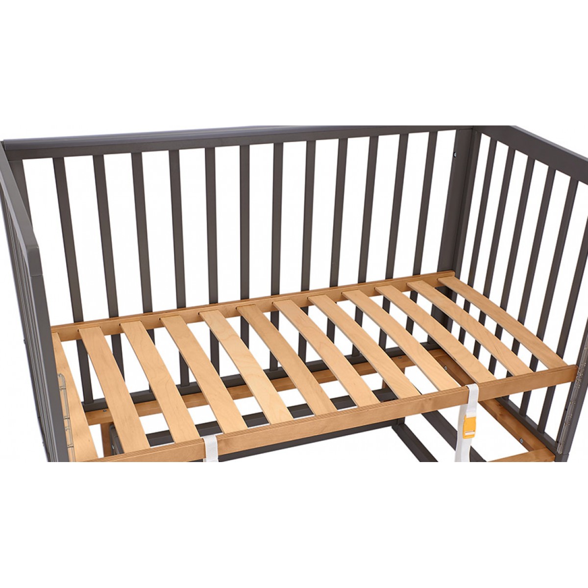 Чтобы изделие в приставной версии можно было надежно прикрепить к родительской кровати в комплектации идут 2 фиксирующих ремешка с фастексом.