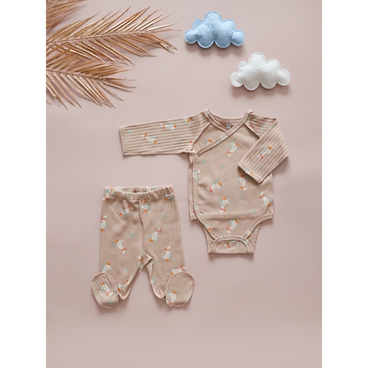 Комплект для малыша 4 предмета 50-56 см цвет: гуси на капучино Т-231