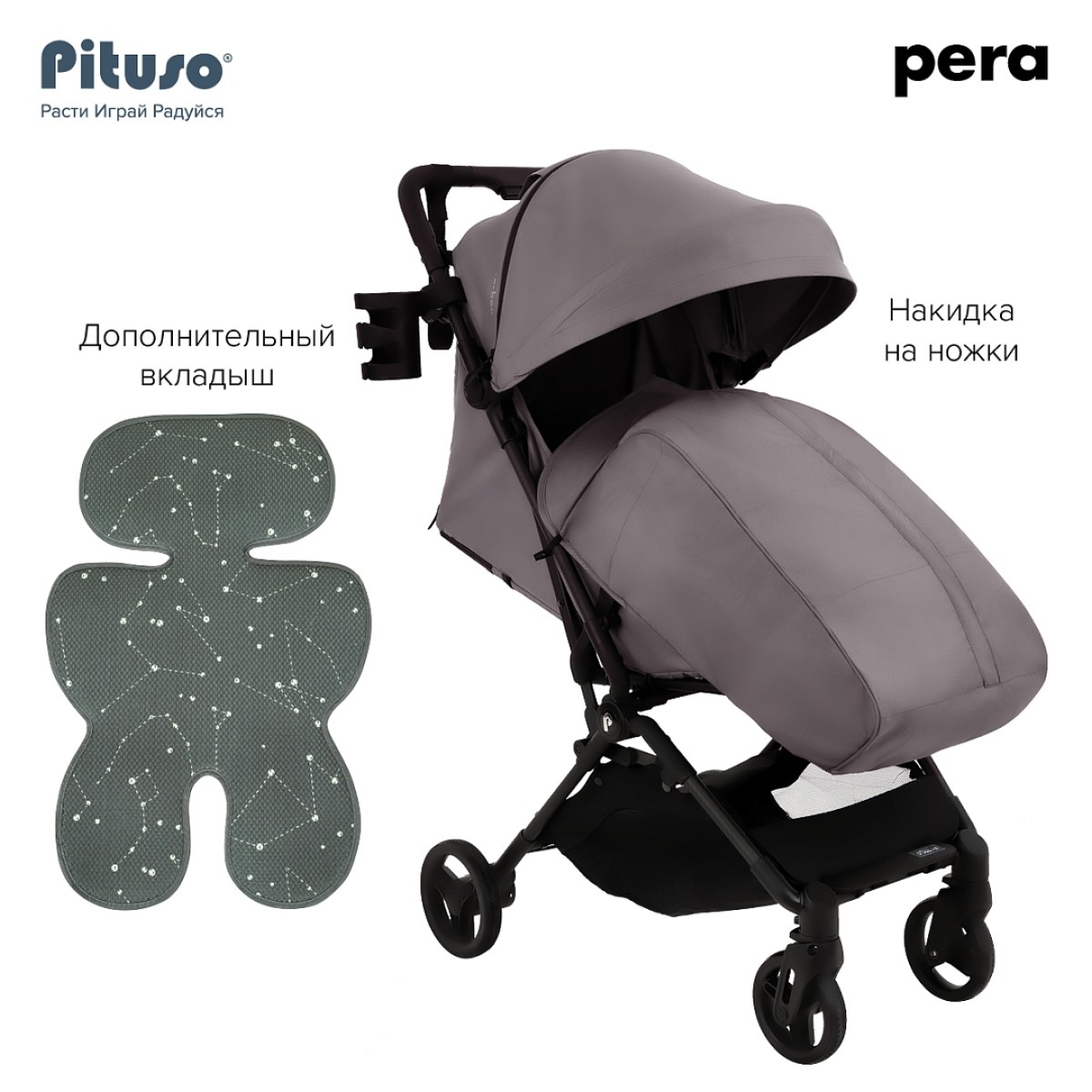 Cтильная, маневренная и легкая (5.7 кг) прогулочная коляска PITUSO PERA идеально подходит не только для прогулок, но и путешествий. Складываясь до очень компактных размеров, коляска подходит под параметры ручной клади в самолете.
