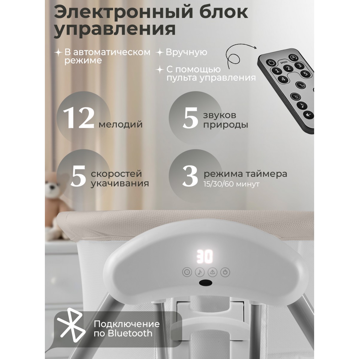 Интеллектуальный блок с дисплеем: Уникальная система электронного укачивания позволяет регулировать скорость качания, чтобы ваш малыш всегда чувствовал себя уютно и спокойно. Функцию раскачивания можно легко отключить, когда это необходимо.