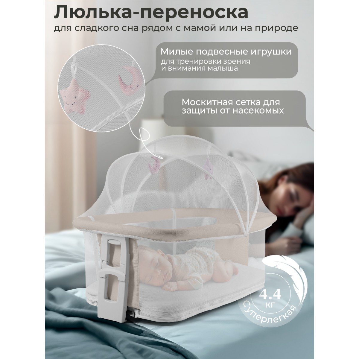 Легкость перемещения: Колыбель для новорожденных легко перекатывается по комнате на скрытых колесиках, позволяя вам всегда быть рядом с вашим малышом. Это делает ее удобной для использования в любом помещении вашего дома.