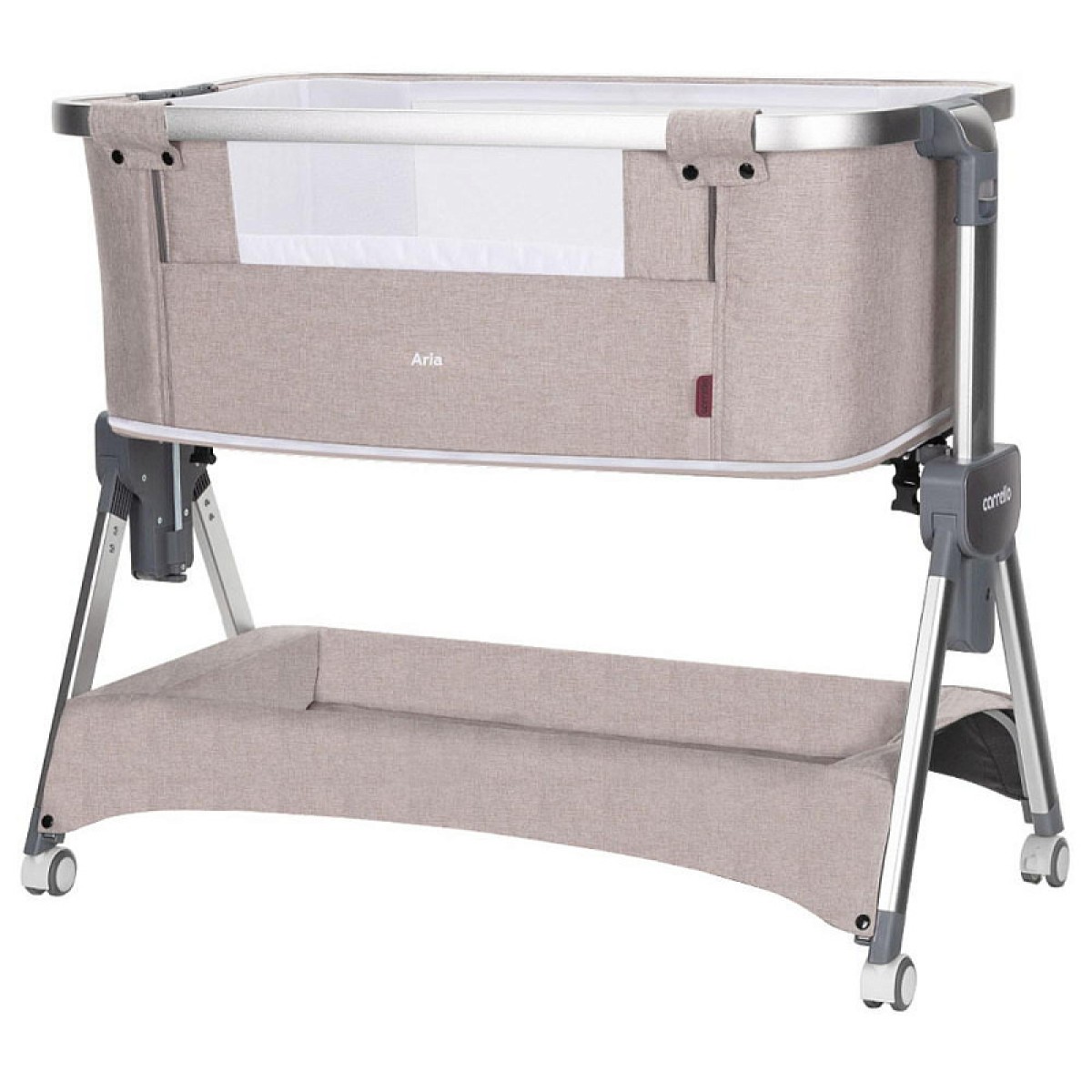 Приставная кроватка-манеж 3 в 1 Carrello Aria надежная и комфортная приставная кроватка с гибкой настройкой и компактным складыванием. Матрасик входит в комплект кроватки и фиксируется внутри при помощи липучек. Циркуляция воздуха, гипоаллергенные материалы и жесткое основание кроватки гарантируют здоровый сон малышу. Кроватка может использоваться как самостоятельное изделие и в качестве приставной кроватки, а также в качестве манежа. Быстрая трансформация из уютной кроватки в просторный манеж.