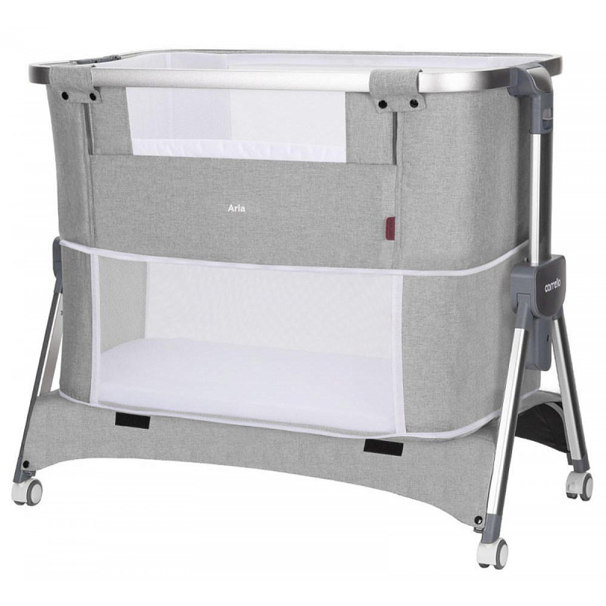 Приставная кроватка-манеж 3 в 1 Carrello Aria надежная и комфортная приставная кроватка с гибкой настройкой и компактным складыванием. Матрасик входит в комплект кроватки и фиксируется внутри при помощи липучек. Циркуляция воздуха, гипоаллергенные материалы и жесткое основание кроватки гарантируют здоровый сон малышу. Кроватка может использоваться как самостоятельное изделие и в качестве приставной кроватки, а также в качестве манежа. Быстрая трансформация из уютной кроватки в просторный манеж.