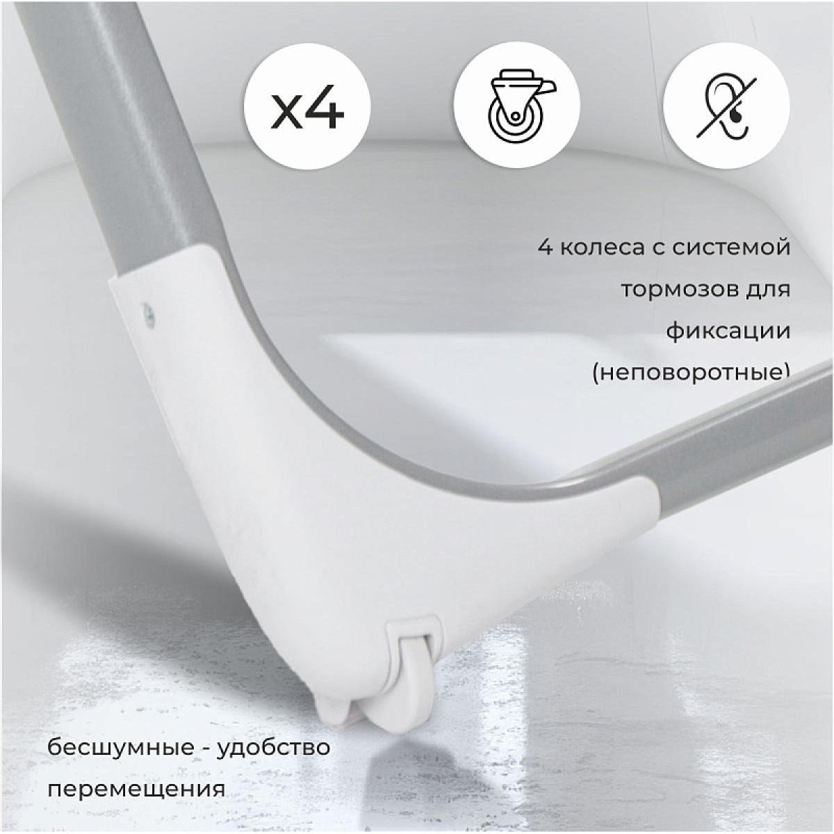 Пульт дистанционного управления с электронным блоком: лёгкое управление функциями стульчика.4 колеса со стопорами: устойчивость и безопасность.