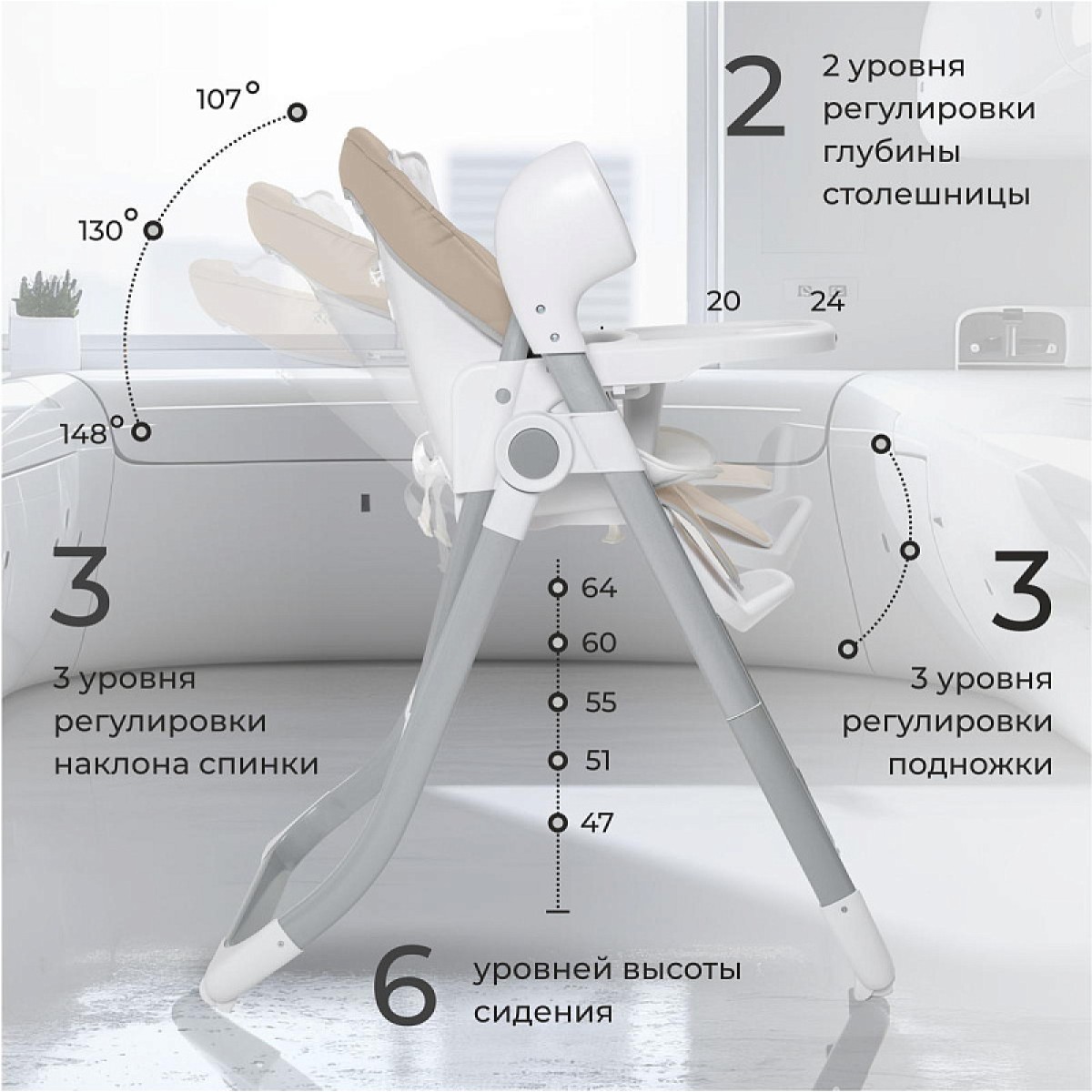 Автоматическое выключение через 2 часа работы: экономия энергии и забота о малыше.6 уровней высоты сиденья: адаптируйте стульчик под рост ребёнка.4 положения регулировки наклона спинки: комфортное положение для сна и бодрствования.2 положения регулировки глубины столешницы: удобство для кормления и игры.4 уровня регулировки складывающейся подножки: адаптация под возраст и рост малыша.5-точечные ремни безопасности: надёжная защита ребёнка.