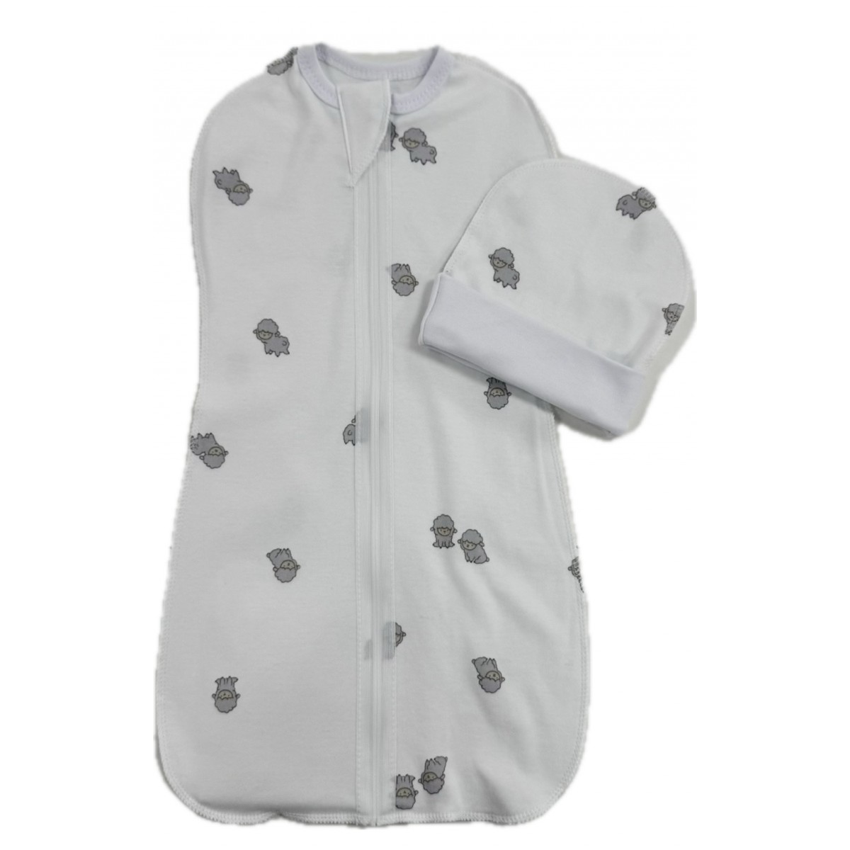 Пеленка-кокон на молнии с шапочкой 56-62 см принт: барашки Т-007